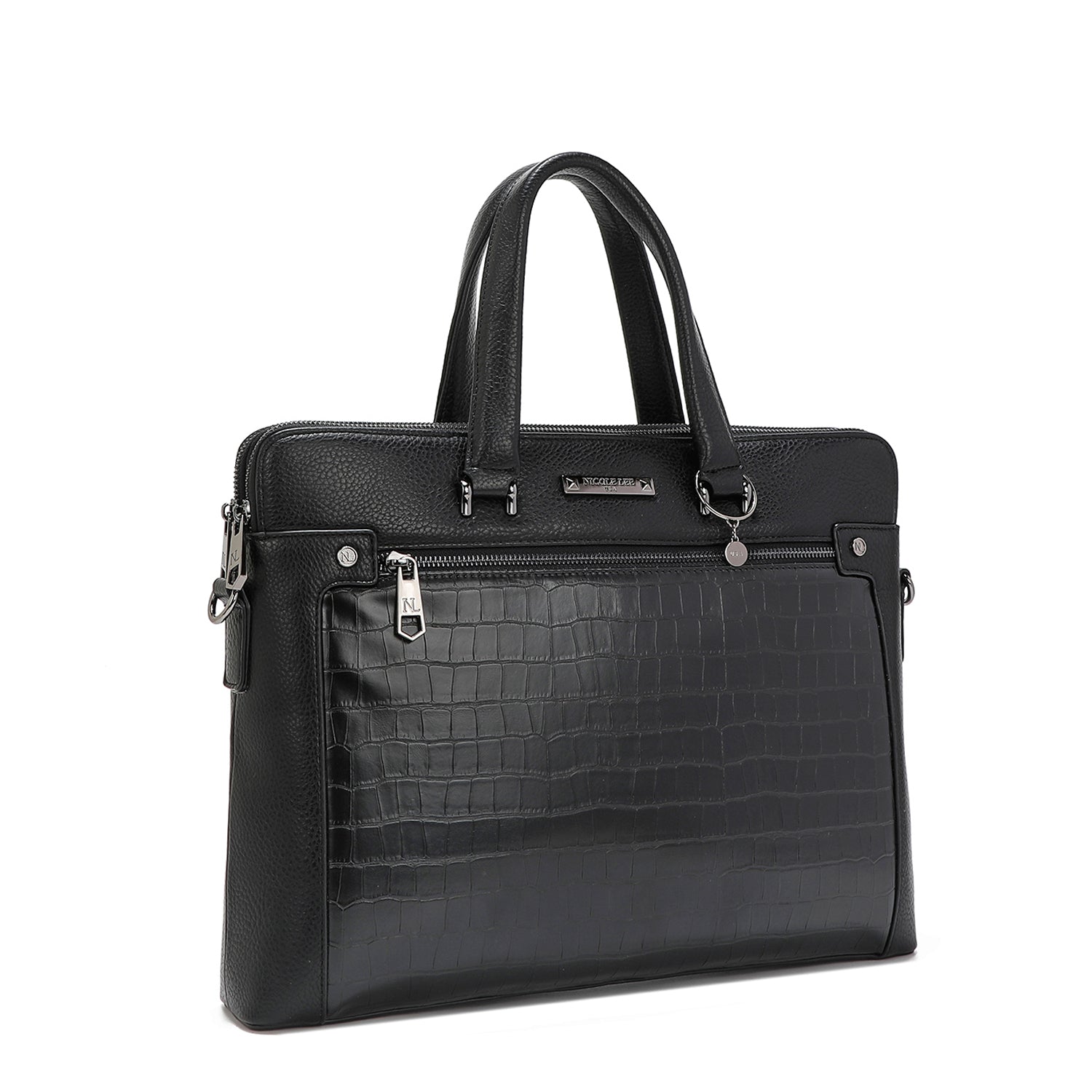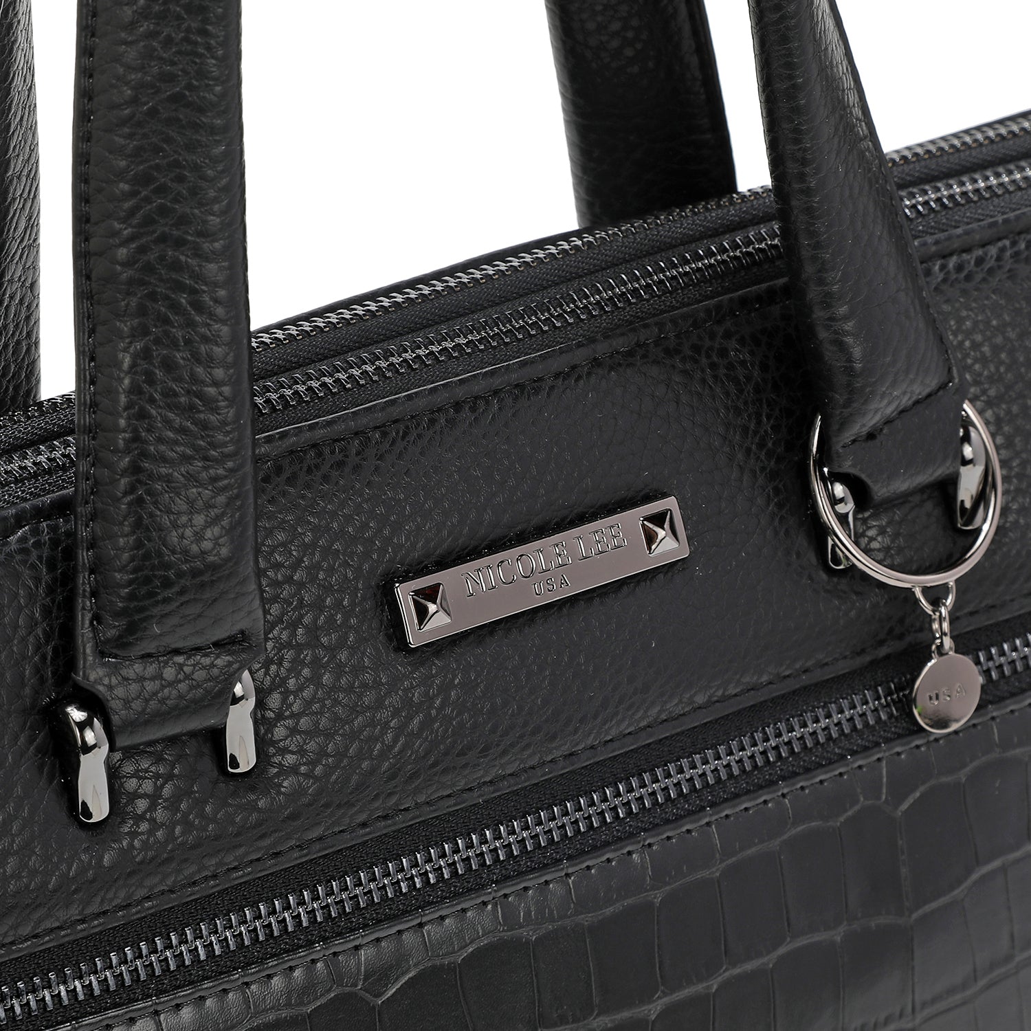 - Padded, dual top handles (5.5" drop) with Nicole Lee authentic circle charm