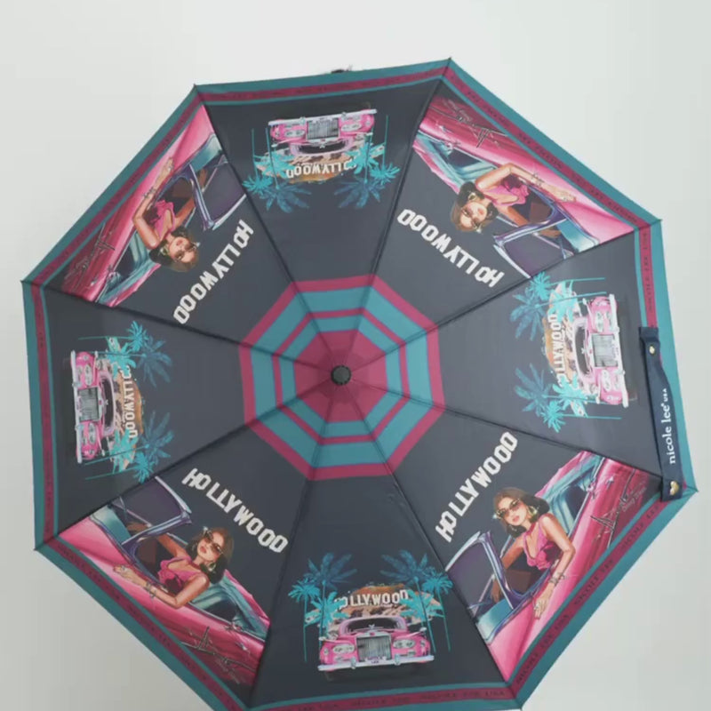 Rainy days don't have to be gloomy with our eye-catching and compact umbrellas. A matching storage bag is included so you can keep it in your favorite Nicole Lee handbag whenever there's an unexpected downpour.