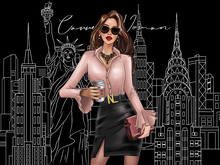 "As a woman who’s immensely passionate and proud of my career as a designer, I’m here to celebrate all the girl bosses of the world. I am so grateful that I get to do what I love everyday and call it a career. Some call it a job, I call it a lifelong career. Having worked in cities from all over the world throughout my life, I know how competitive and difficult it can be balancing work and life while staying motivated and resilient. With this contrasting design, I wanted to rightfully highlight all of the hardworking career women of the world by making the woman the center of attention. This sophisticated career woman is vibrantly colored and centered as the focal point against the monochromatic black and white city landscape so she can dazzle and impress, just like you."- Design Director & Vice President, Suzy Han