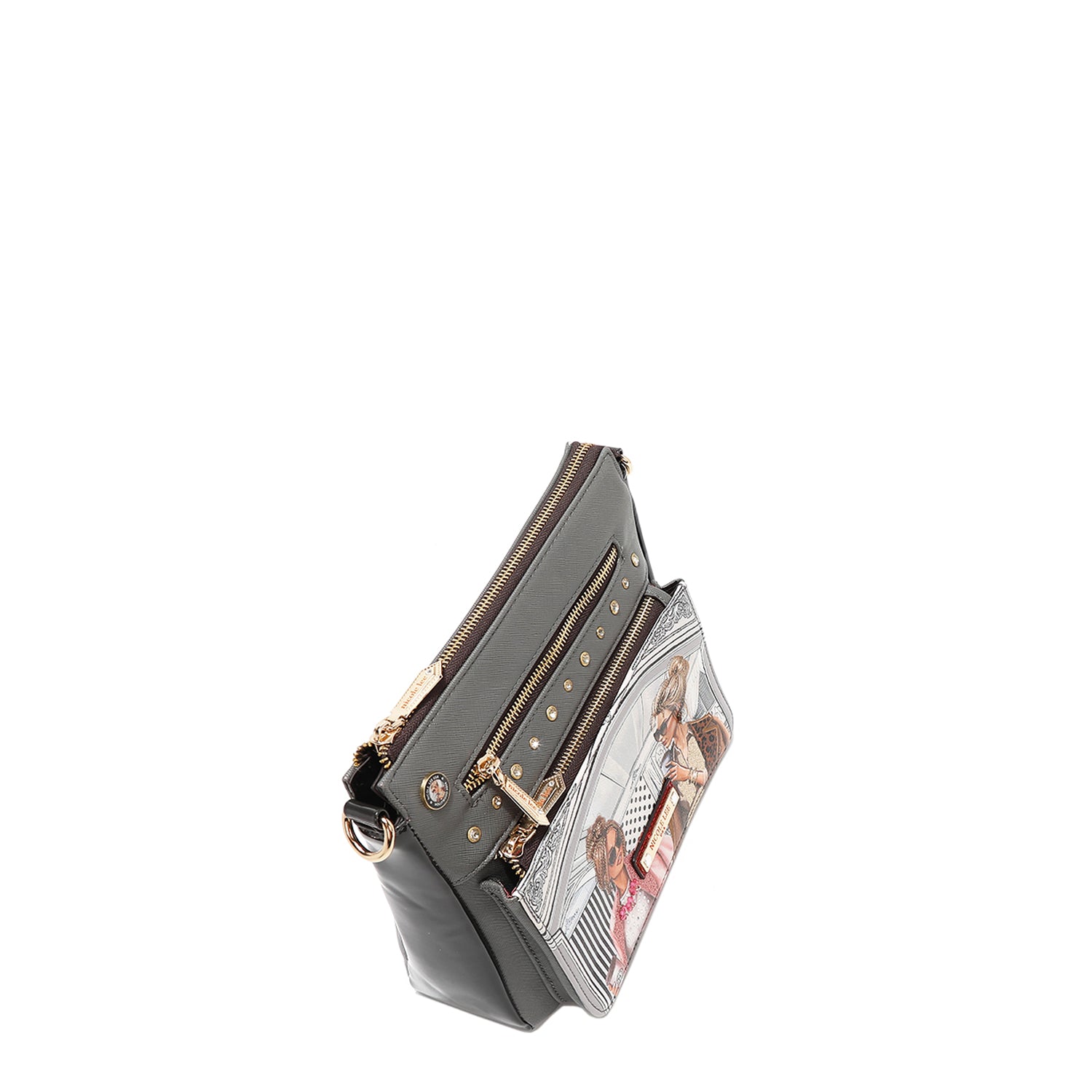 - Logo engraved nameplate with diamond rhinestones and zipper pulls