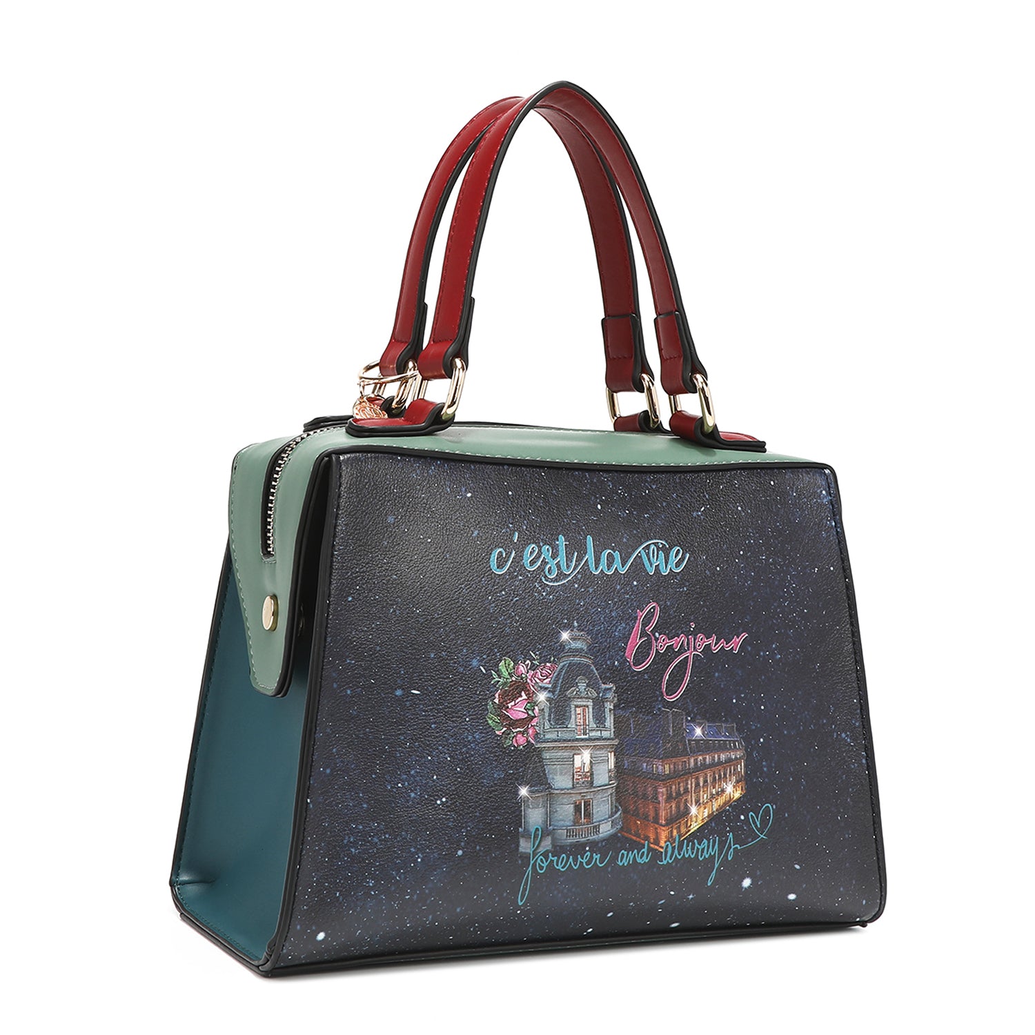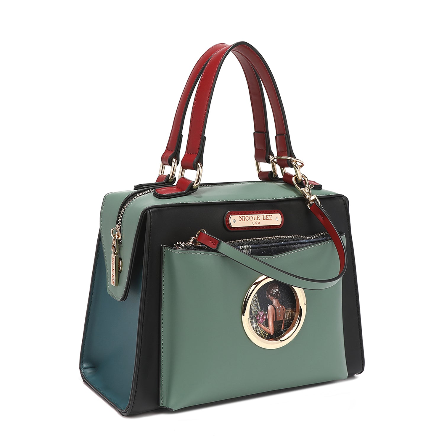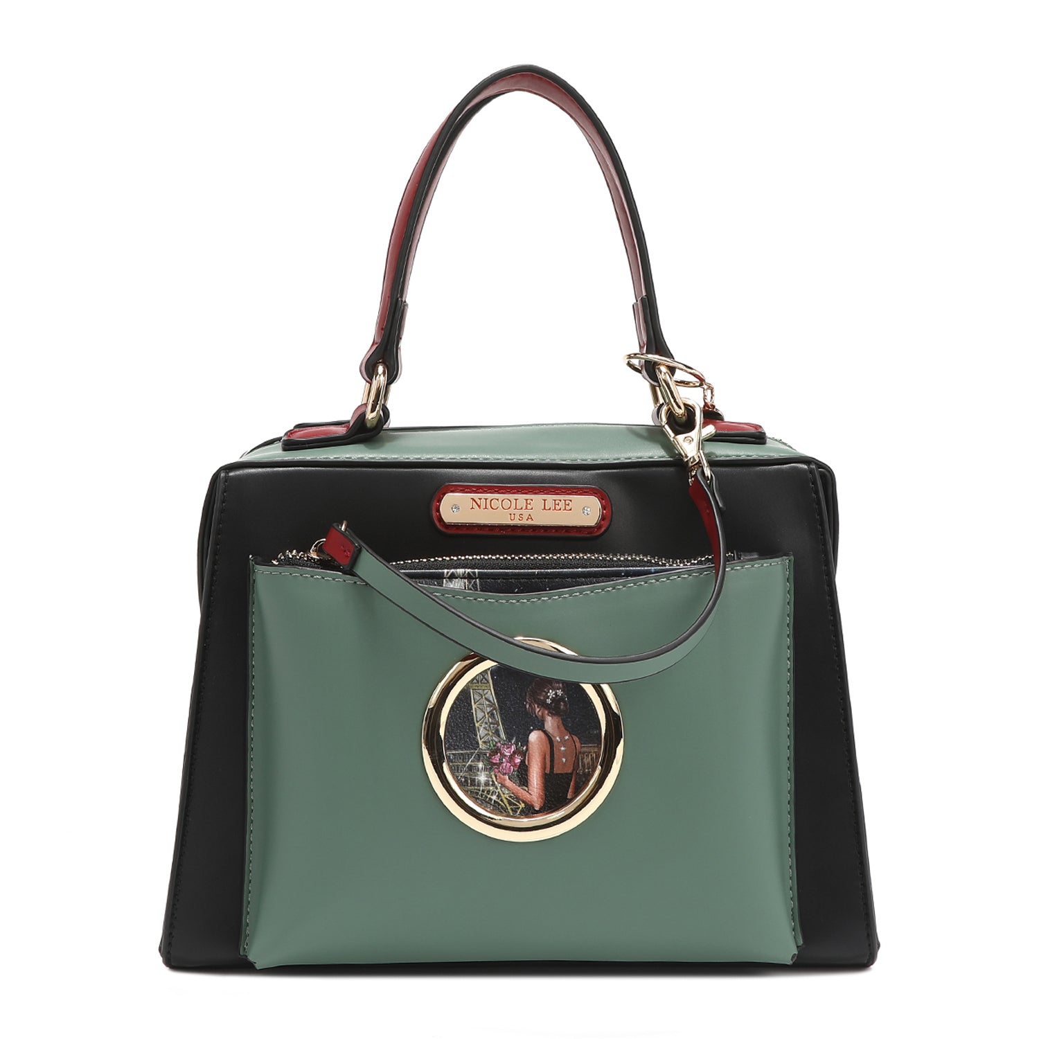 - Relaxed, flat top dual handles (5" drop) with Nicole Lee authentic circle charm