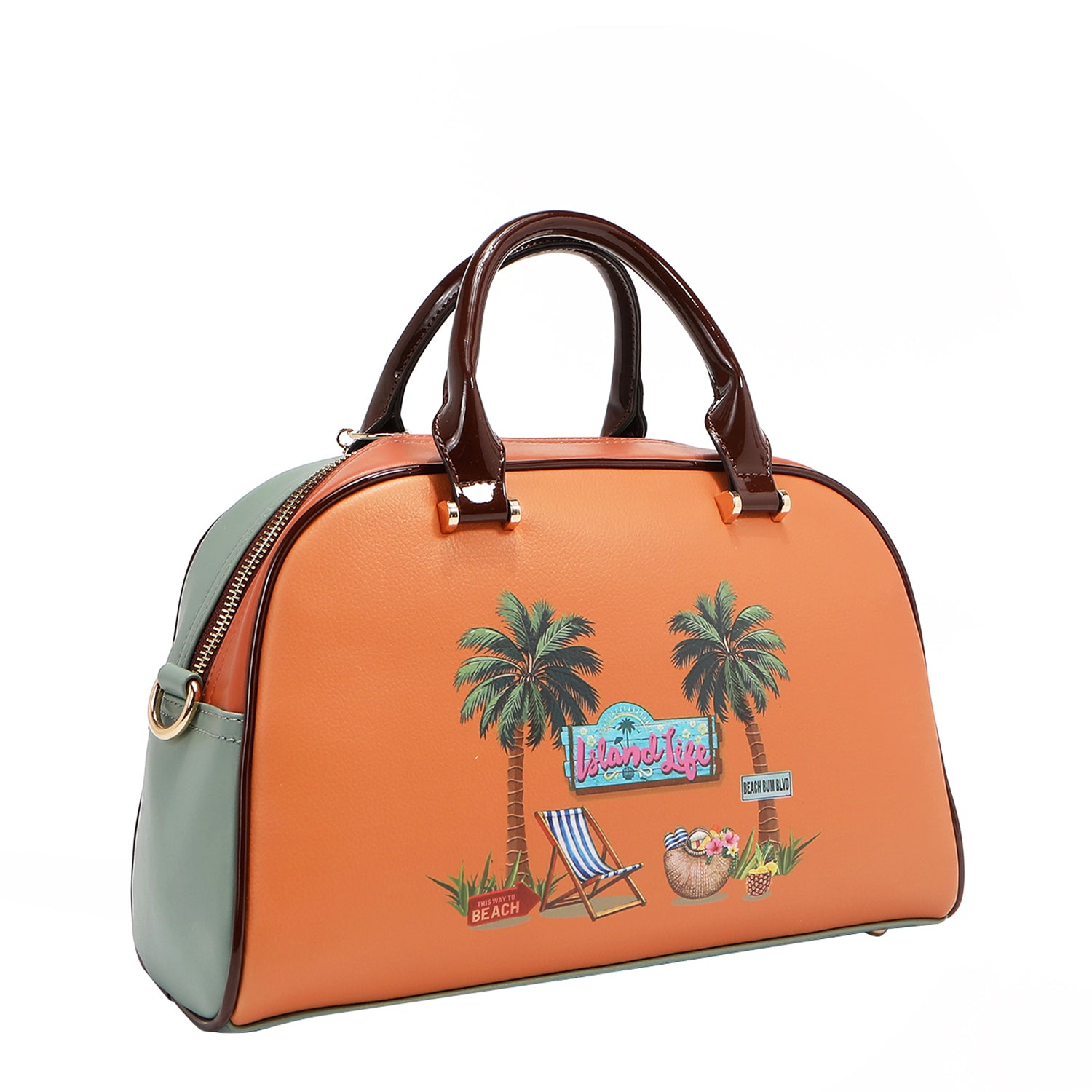 Catch the summer glow with our Sun & Sand Dome Bag, your sunny sidekick featuring breezy palms, cozy hammocks, and all the island magic to make every day feel like a beach getaway! .