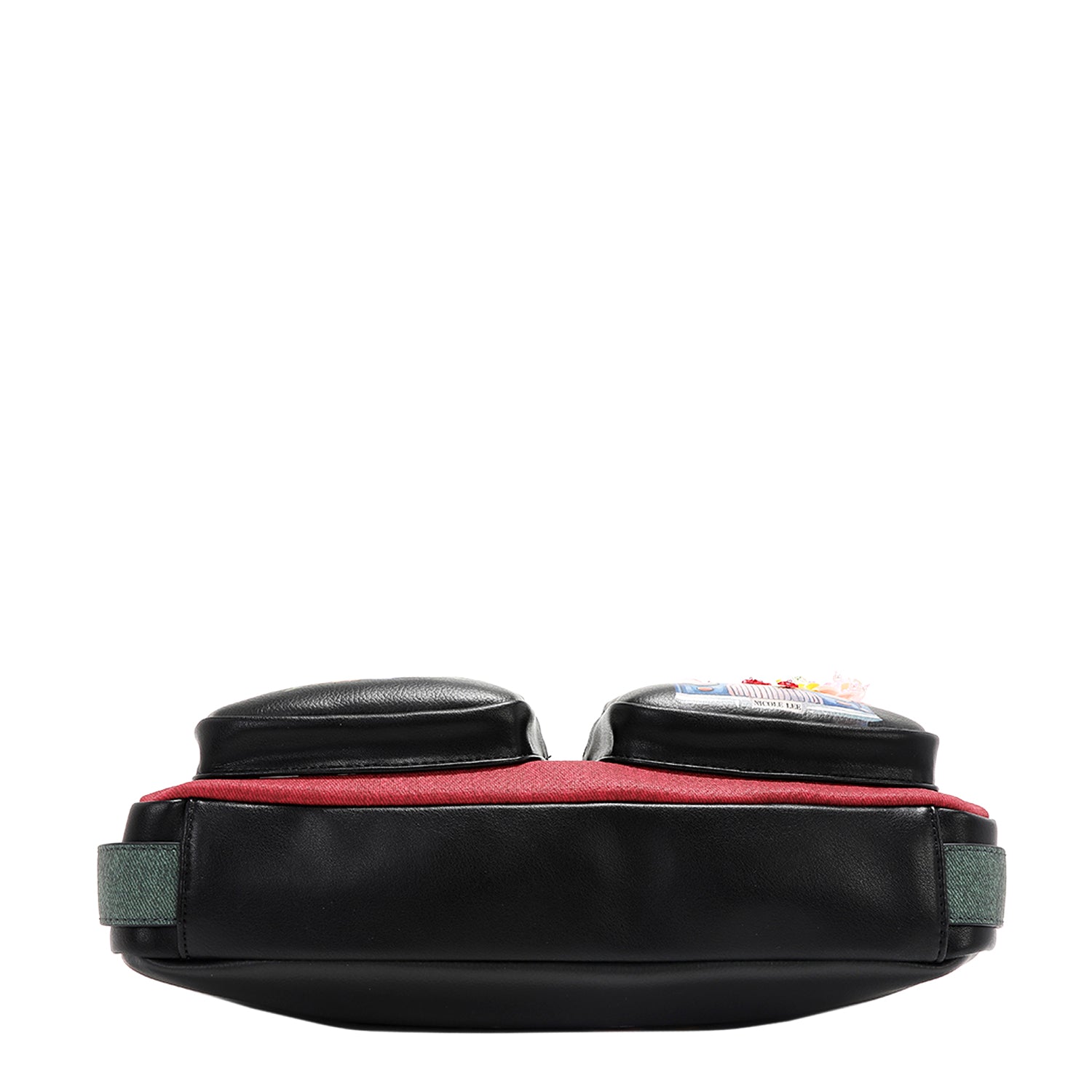 The Family Yearbook hobo bag features a slim yet wide silhouette with two front zip pockets for easy access to your essentials. Adorned with our exclusive Family Yearbook print, iridescent flowers, diamond rhinestones, and a charming bow on the front pockets, it combines playful elegance with practical design.
