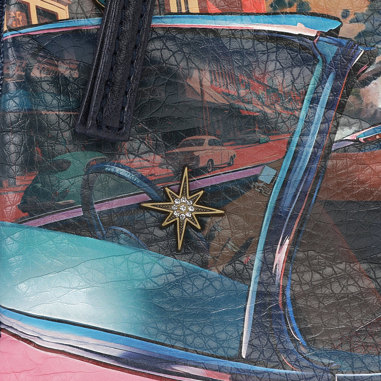 - Structured, rolled dual top handles (7.5" drop) with Nicole Lee authentic circle charm
