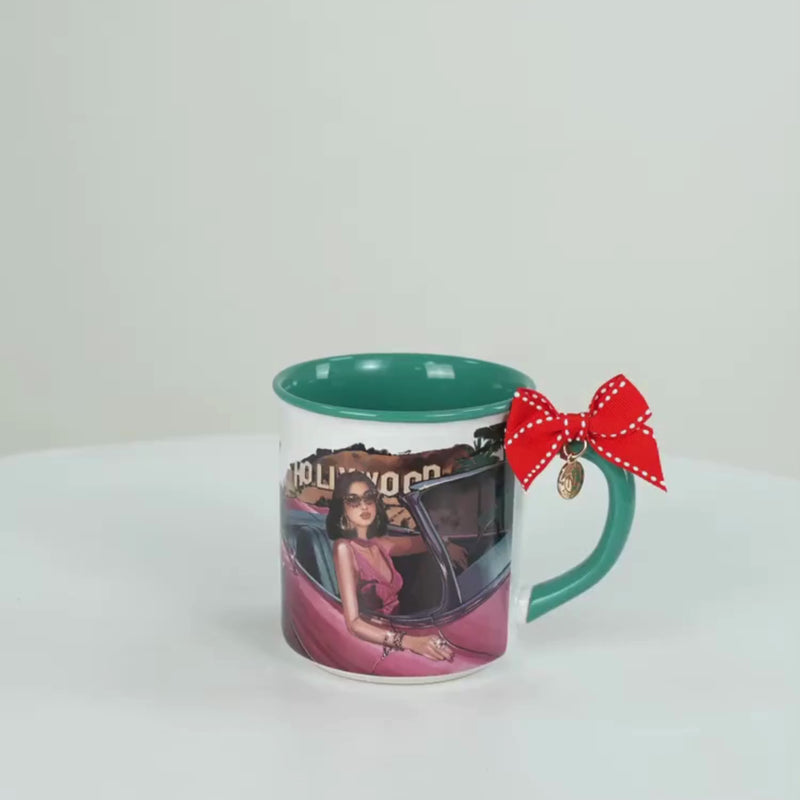 The newest addition to our home goods lineup, sip in style with our ceramic mugs adorned with a cute bow and charm accent in our exclusive fashion prints. Perfect for morning coffee at work or hosting friends for afternoon tea, these statement mugs effortlessly complement your personal style.