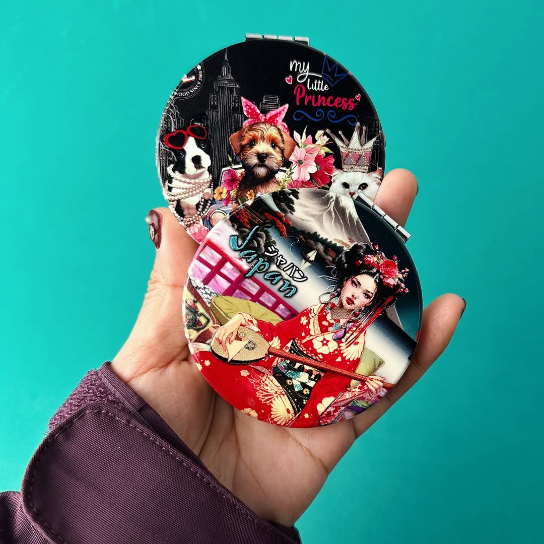This sleek round compact features a regular mirror on one side, and a magnifying mirror on the other — perfect for touch-ups. Ultra-slim and portable, it's an elegant essential for every makeup bag.