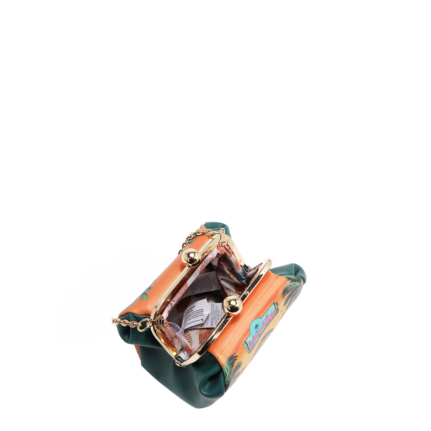 Whether you use it as a pouch, handbag, or crossbody, the options are endless with this must-have accessory you'll reach for time and time again. Featuring a kiss-lock push closure and two straps, it’s the perfect versatile piece for any occasion.