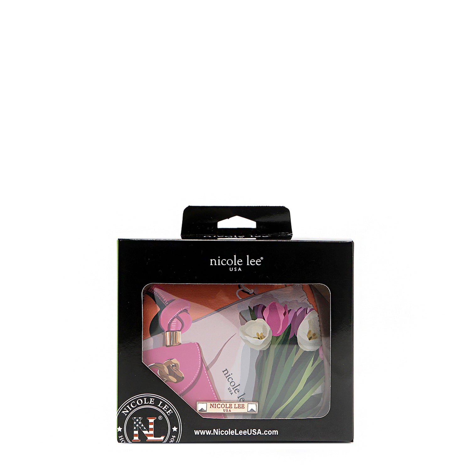 - Includes wristlet chain strap and optional, adjustable crossbody strap