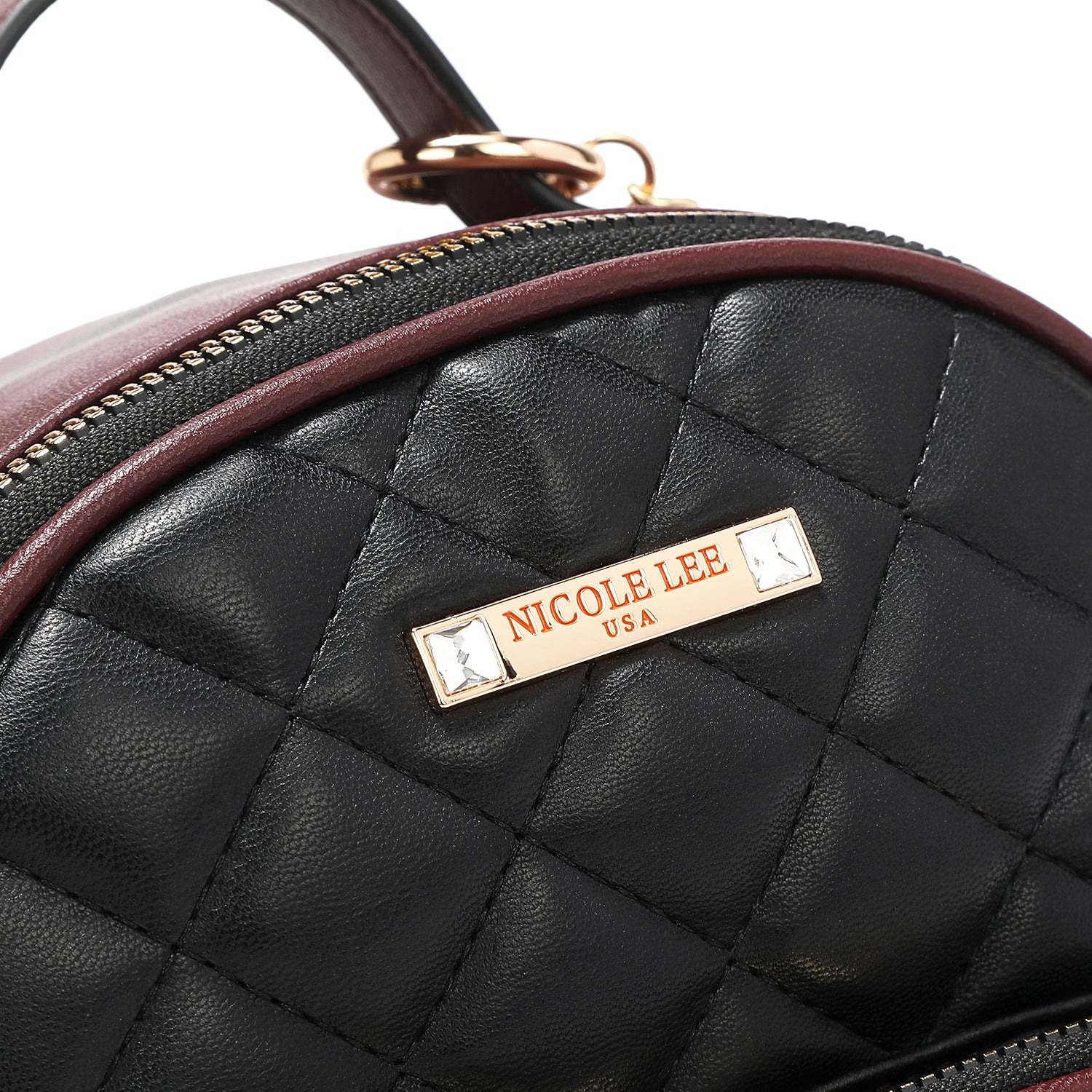 - Pebbled vegan leather exterior with quilted stitch detailing