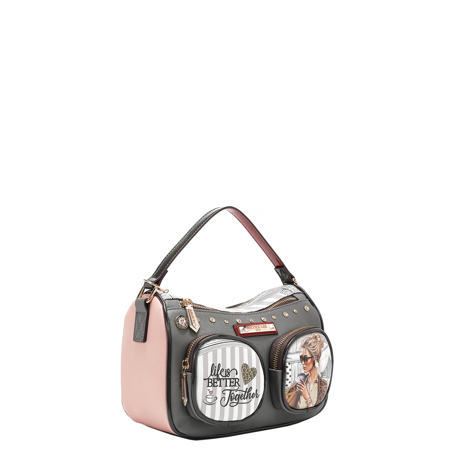 - Relaxed flat top handle (4.75" drop) with Nicole Lee authentic circle charm