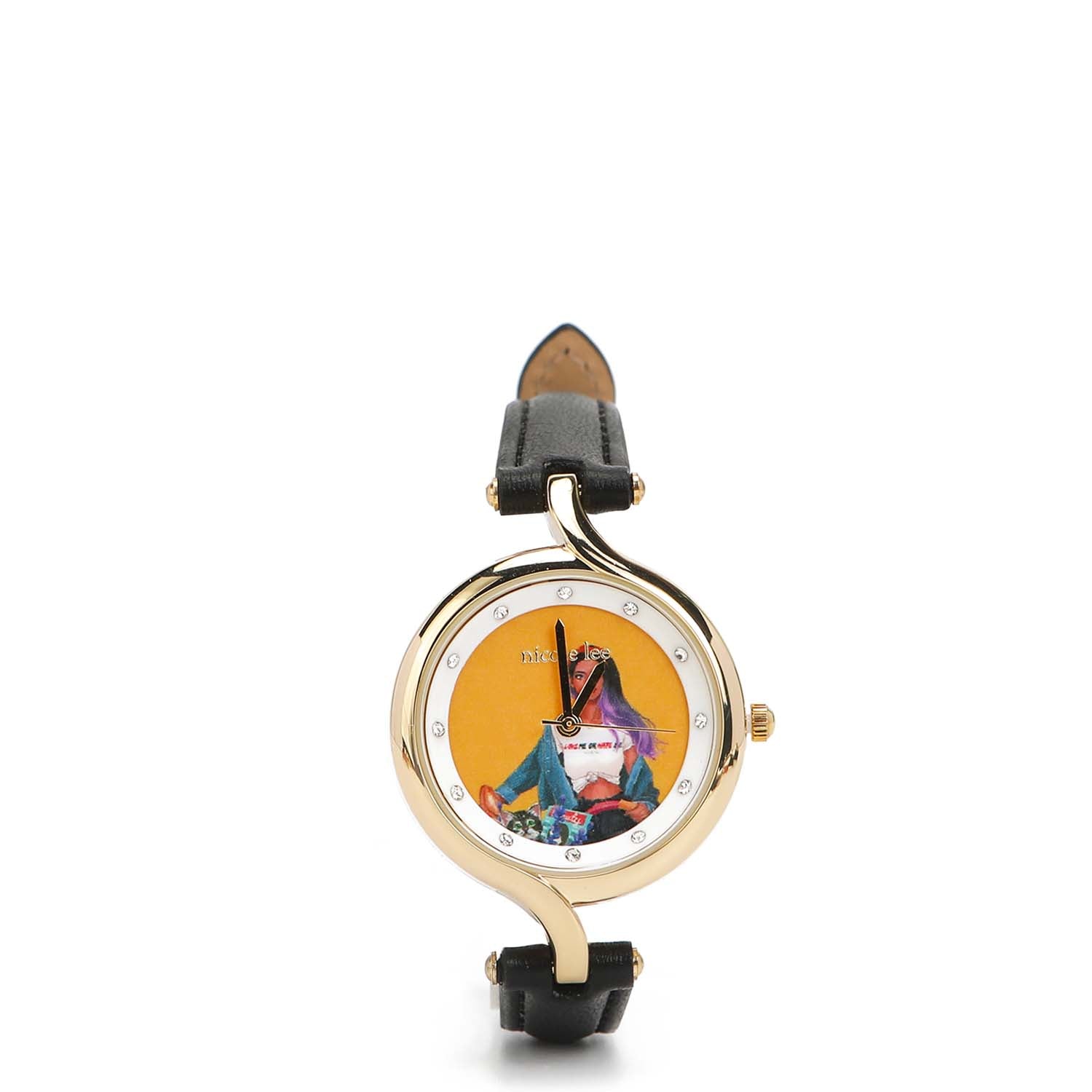 - Nicole Lee premium print design dial framed in white with diamond markers