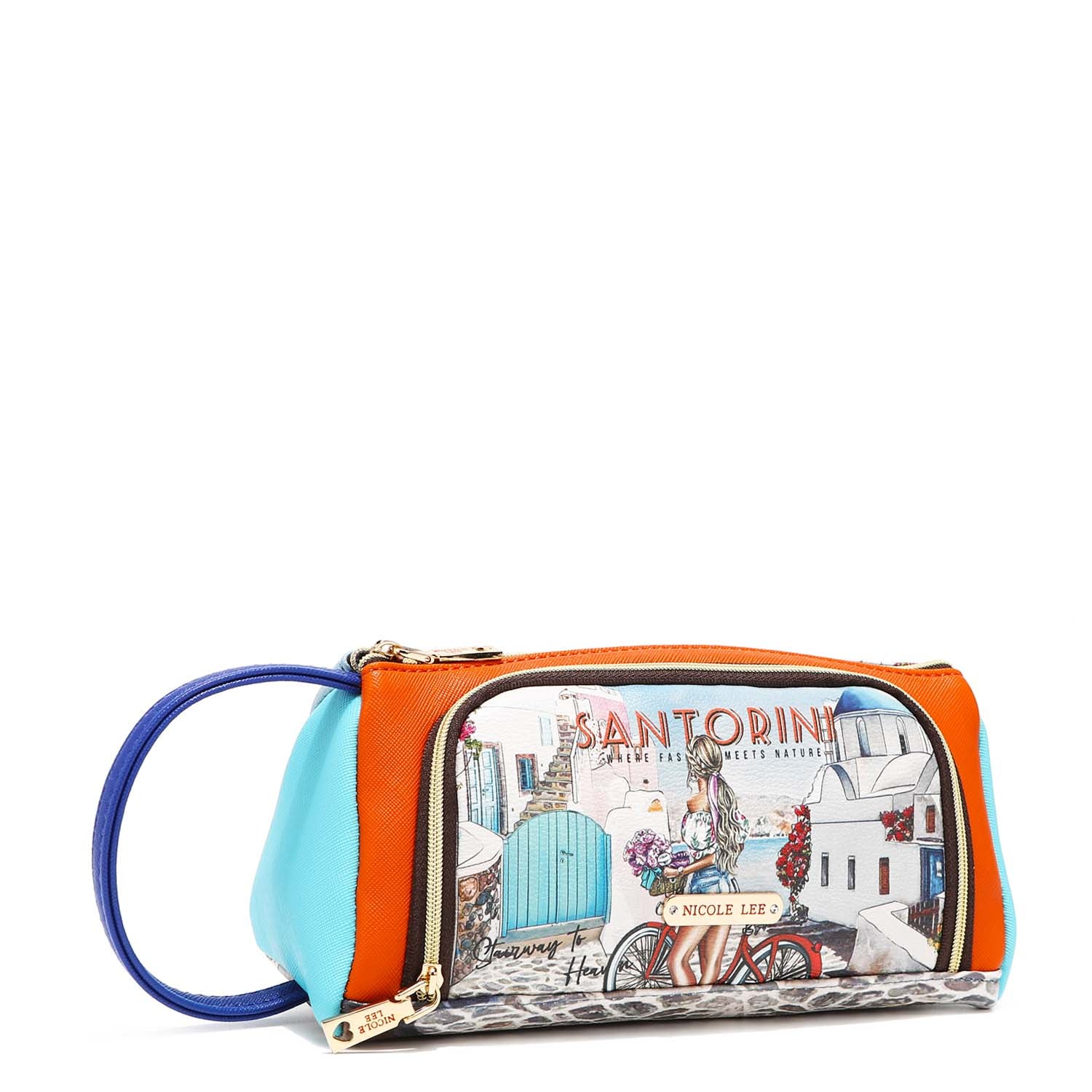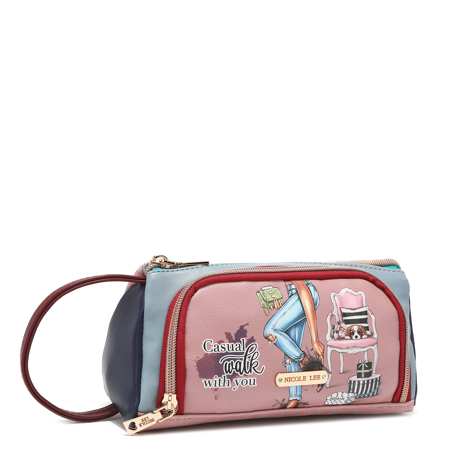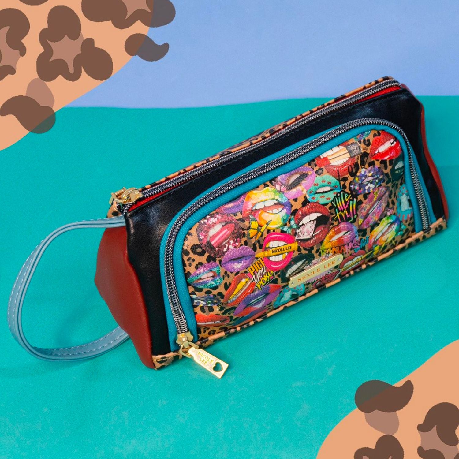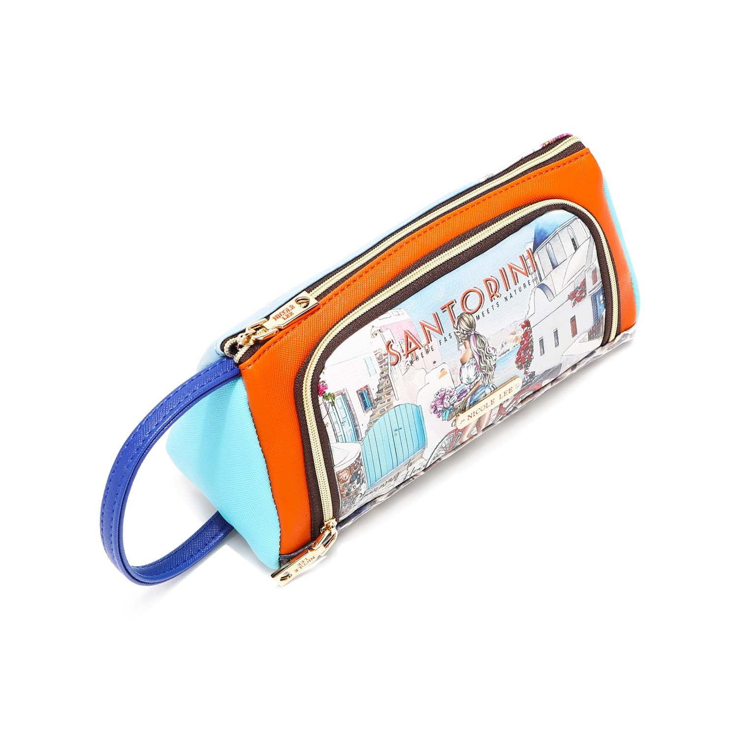 Chic and colorblocked, our cosmetic pouch opens up to a spacious interior with brush holders and plenty of pockets to store your makeup.