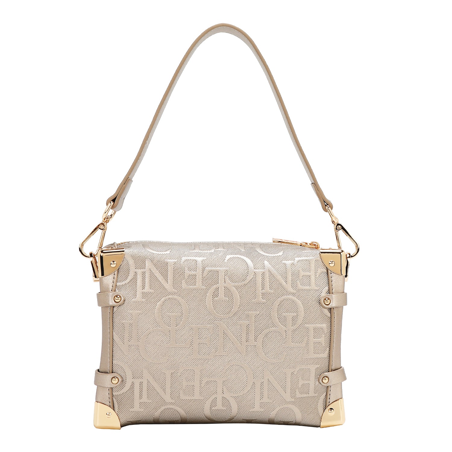 The Embossed Elegance Square Shoulder Bag pairs clean lines with chic embossed details and glamorous gold tone accents, perfect for carrying your essentials with polished sophistication.