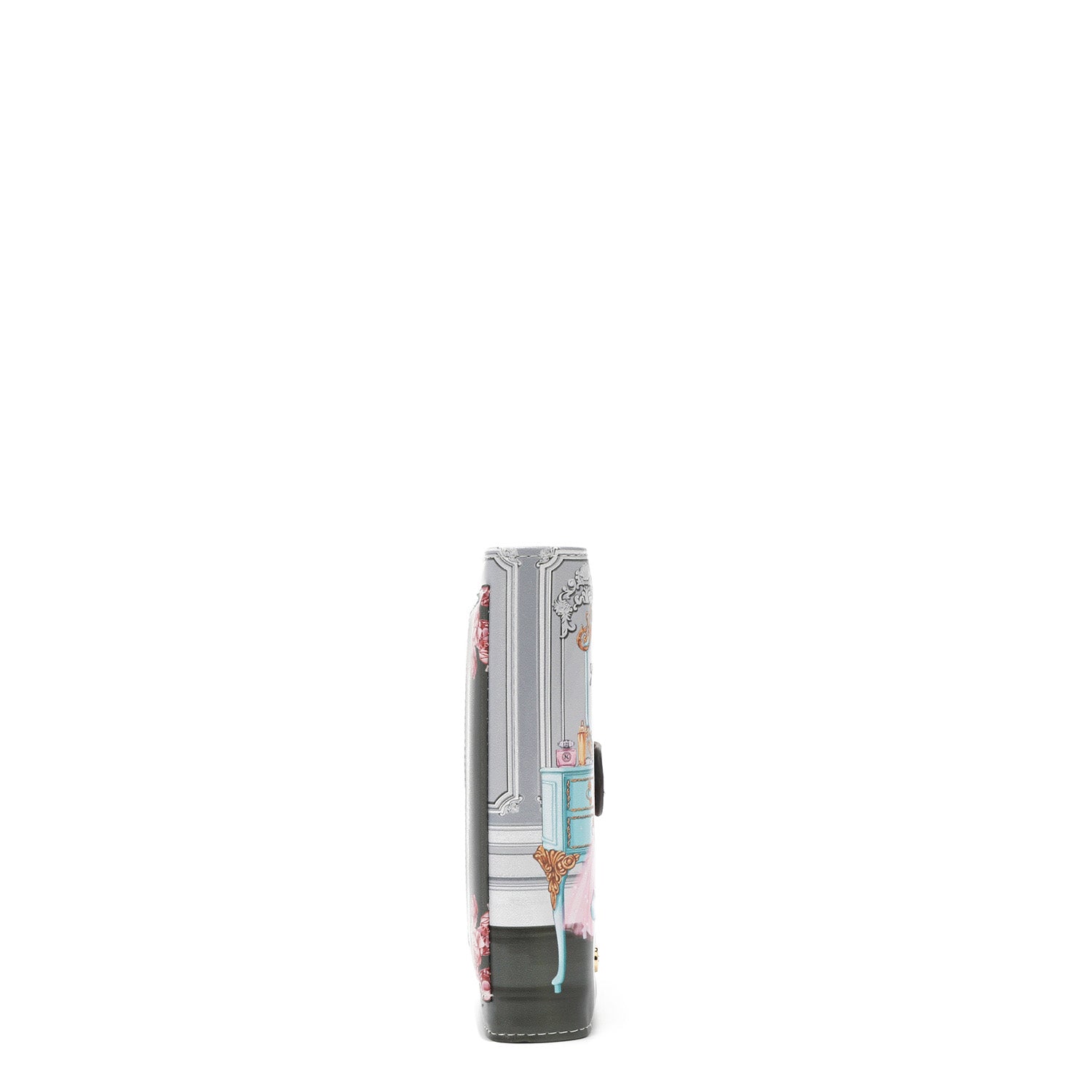 • Interior ID window, built-in heart-shaped mirror, 8 card slots, 2 note slots and adjustable, phone holder (one size fits most. Does not fit iPhone 12 Pro Max)