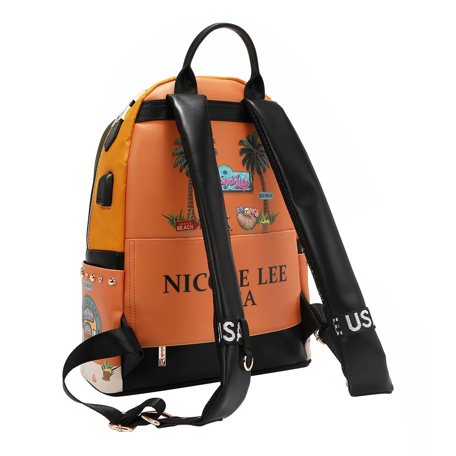 Connect the USB connector cable of your portable charger (not included) to the USB Charging port located on the side exterior of the backpack.