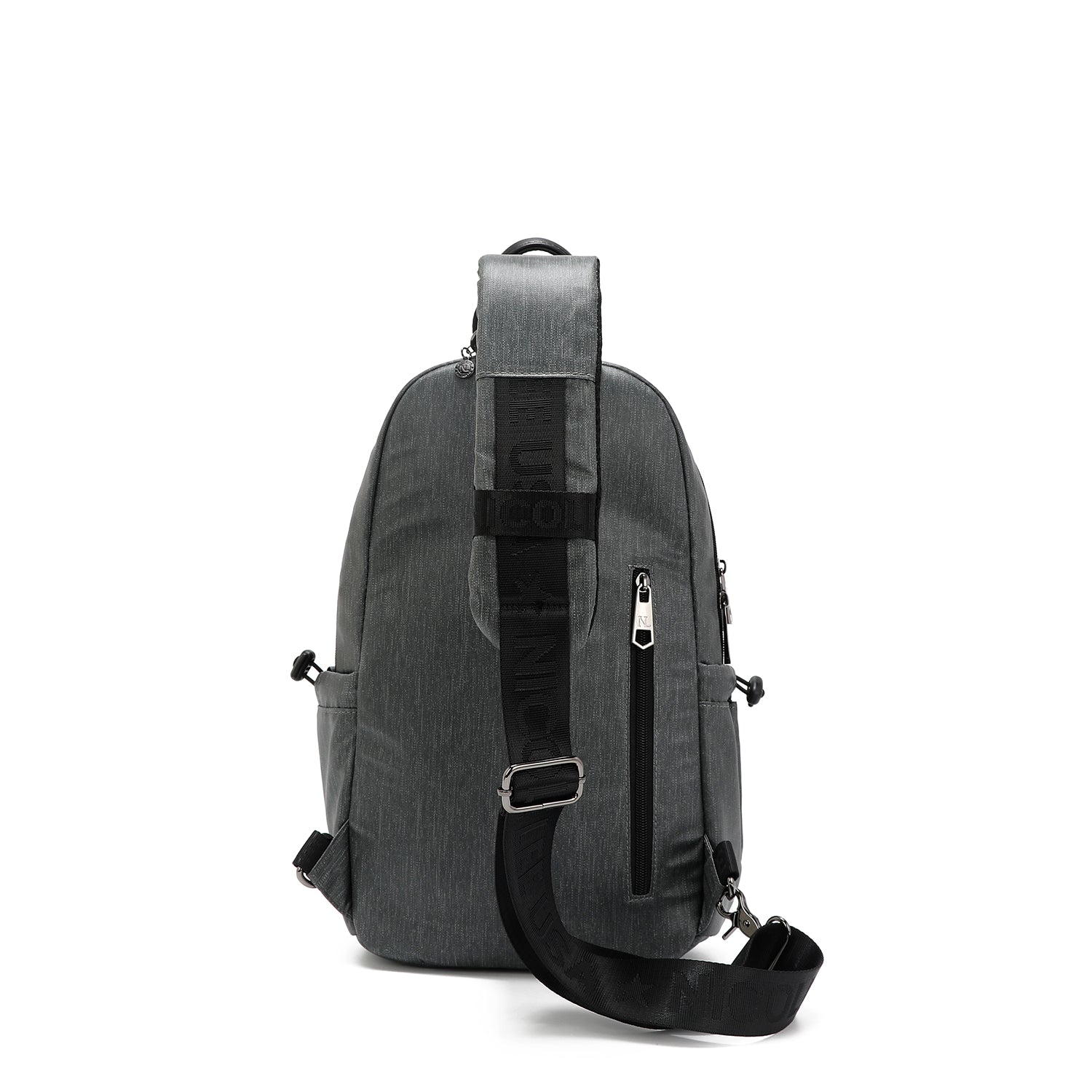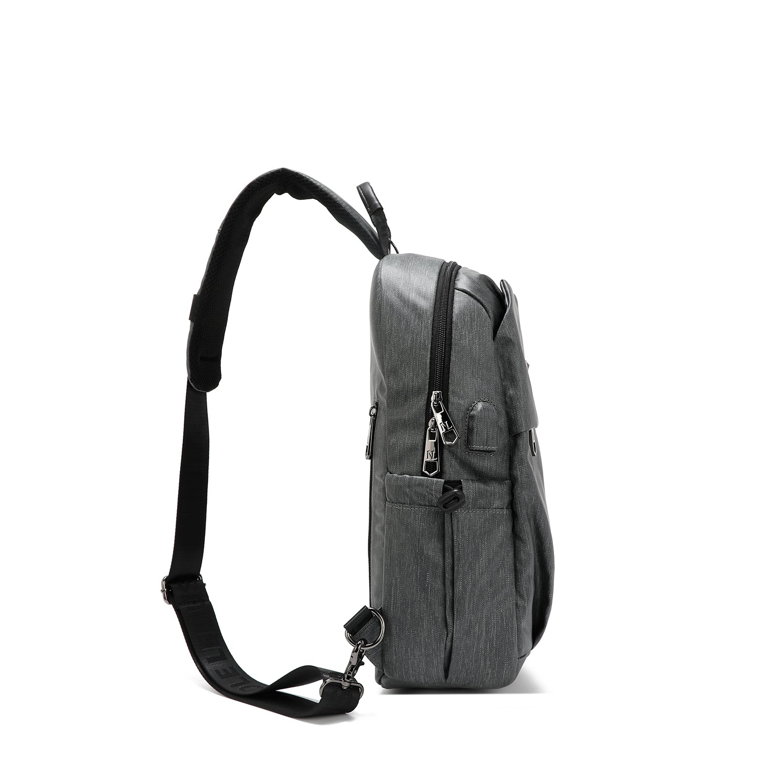 Designed with versatility and comfort in mind, meet our latest men's backpack addition. Crafted with lightweight yet durable nylon, the padded shoulder strap features a detachable end that easily snaps to either side for customizable comfort. Multiple compartments and a thoughtful back zip pocket ensure your essentials are secure and easily accessible.