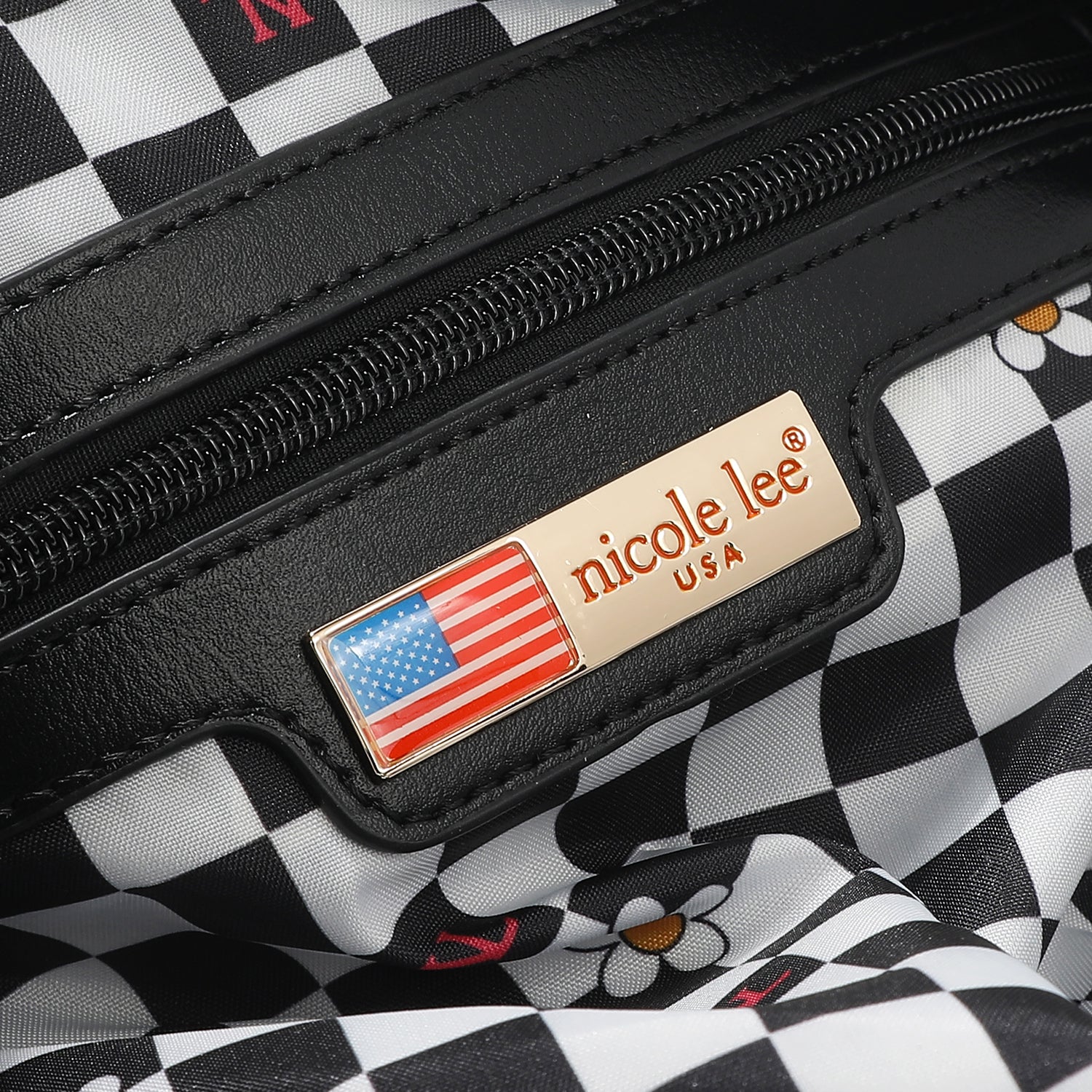 - Structured, rolled dual top handles (5" drop) with Nicole Lee authentic circle charm