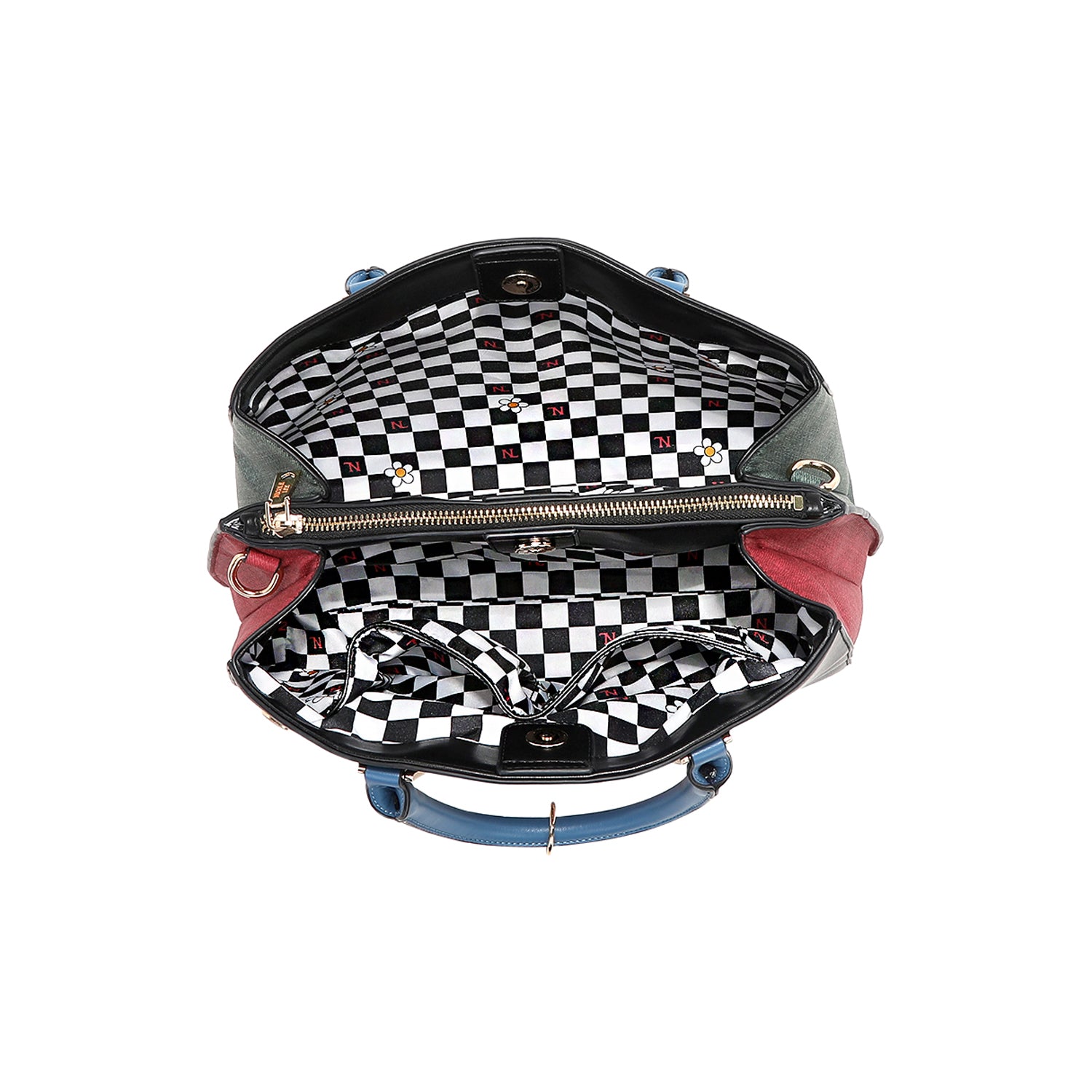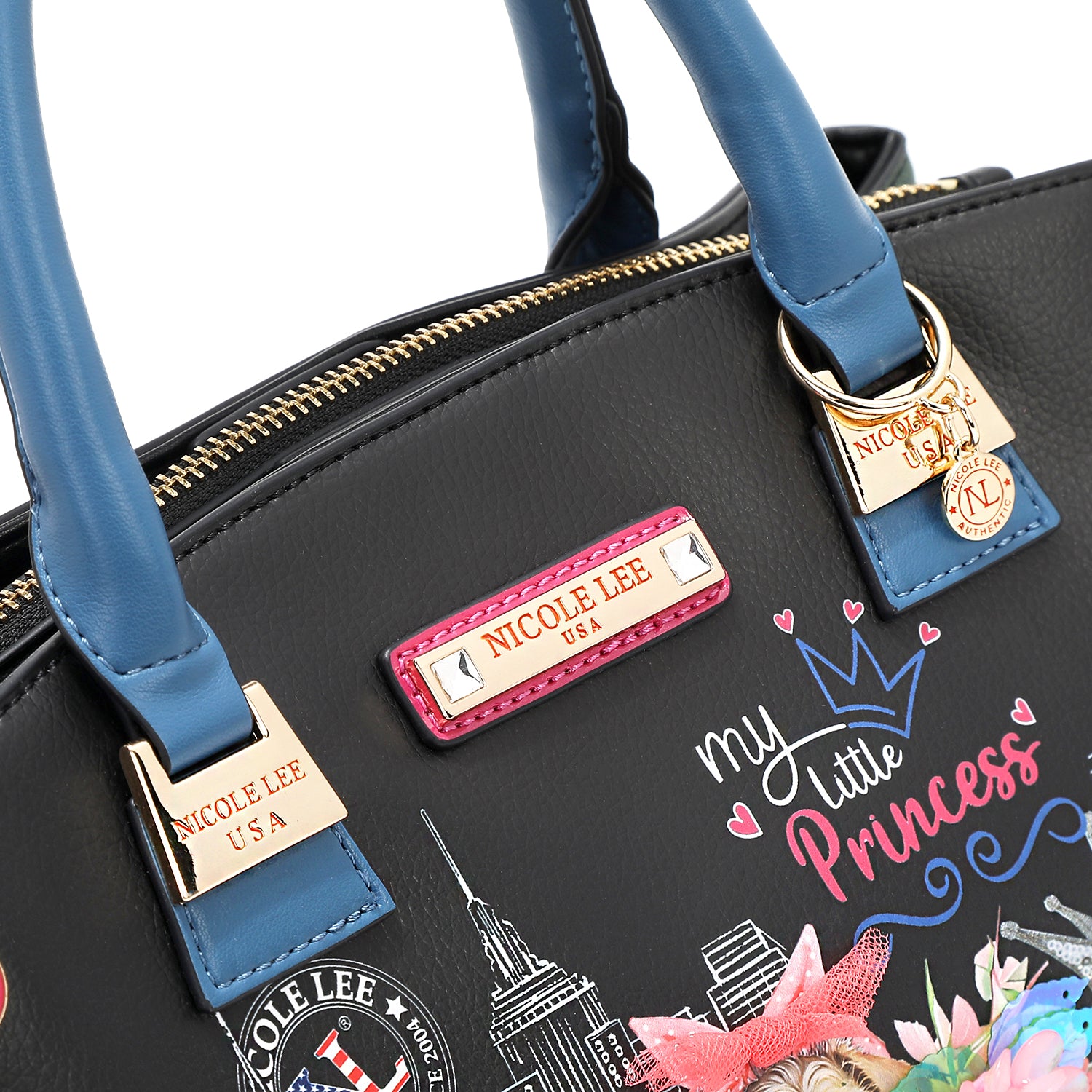 - Structured, rolled dual top handles (5" drop) with Nicole Lee authentic circle charm