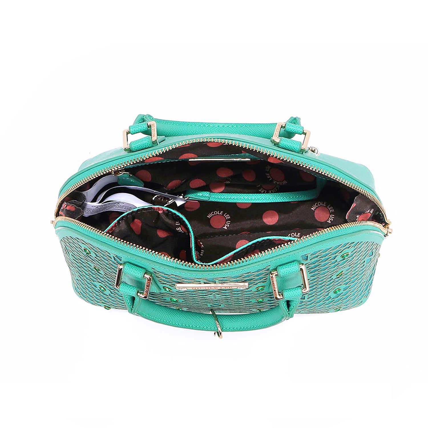 - Gold-tone hardware