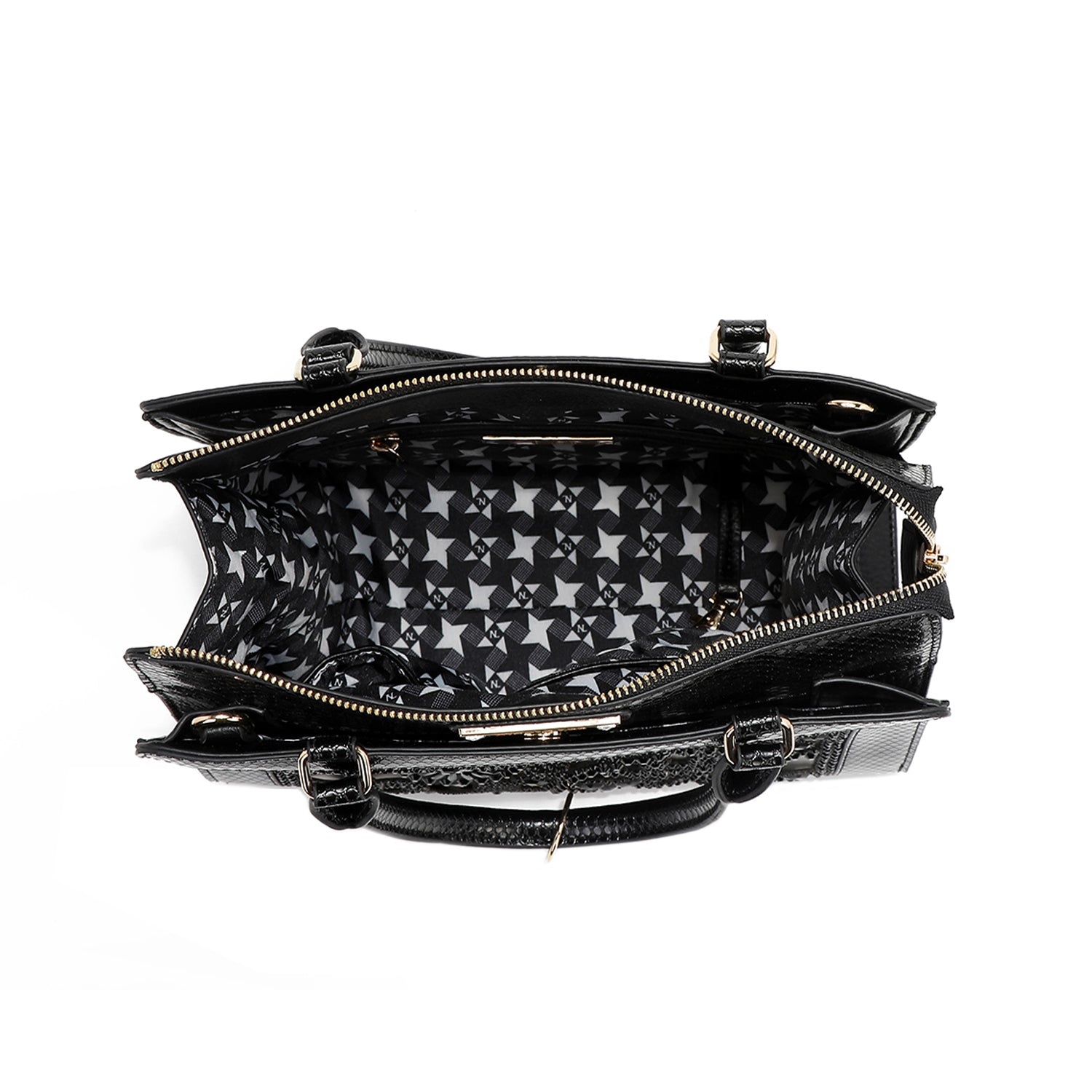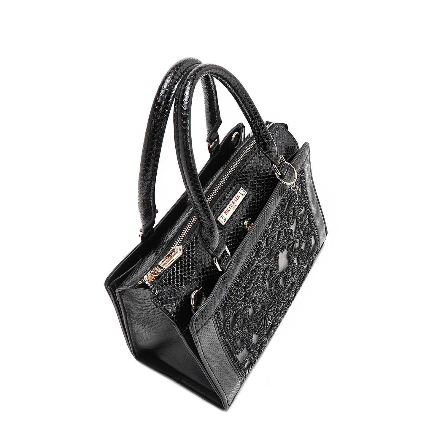 - Structured, rolled dual top handles (6" drop) with Nicole Lee authentic circle charm