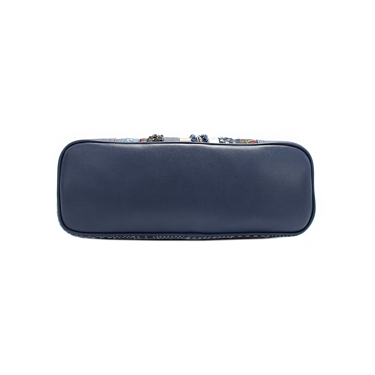 Our denim patch flower dome-shaped satchel is a trendsetting piece that combines patchwork denim, sparkling sequins, and intricate flower embroidery. Fall in love with the thoughtful details like the heart zipper pulls and heart print lining.