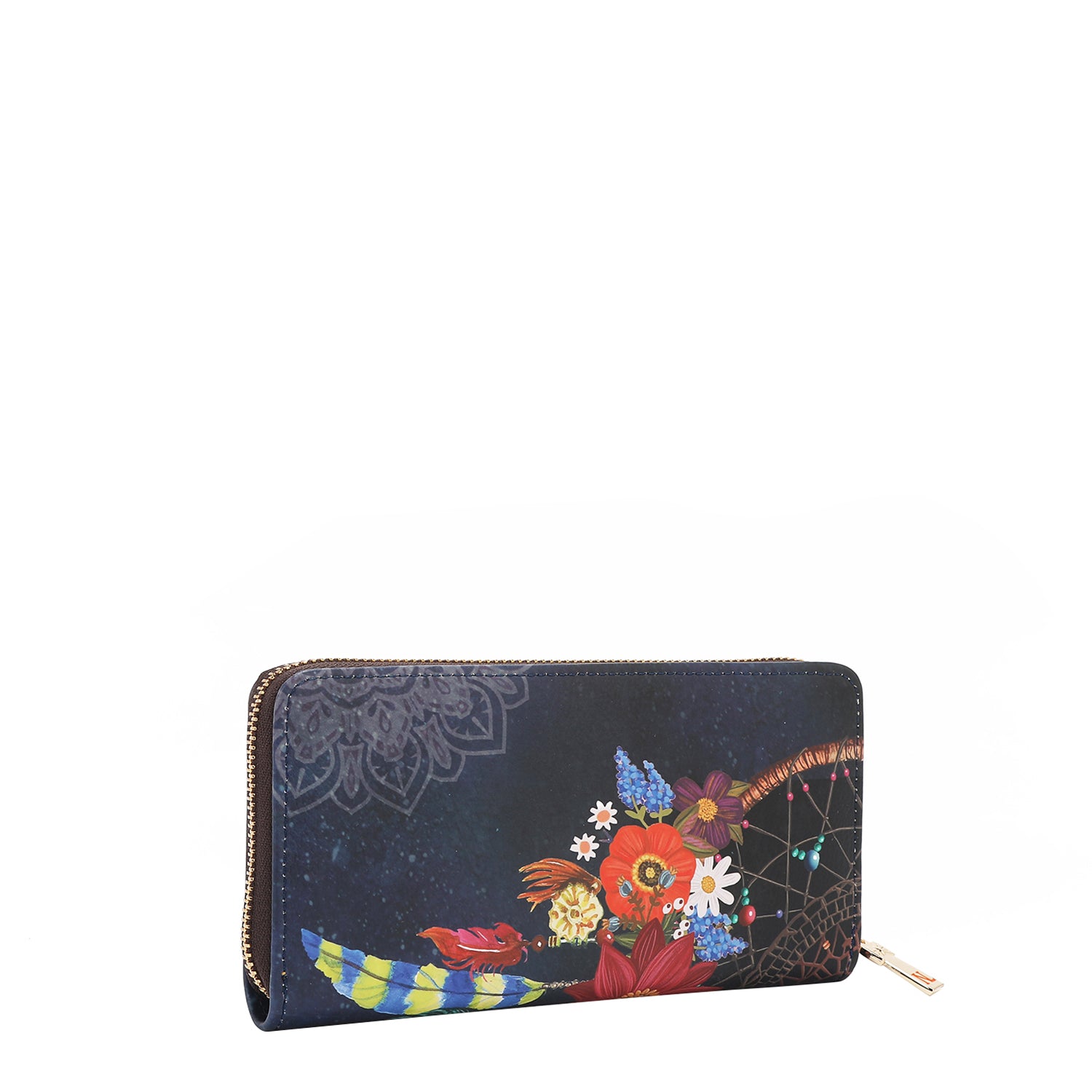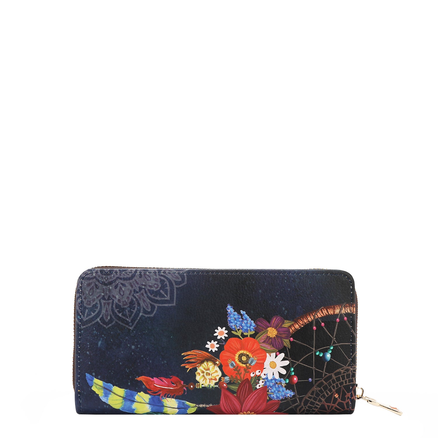 - 2 interior note sleeves, 4 credit card slots, 1 center zip coin compartment