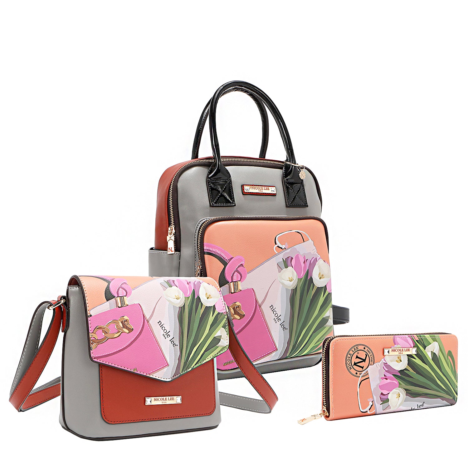 VIOLET BLOSSOM 3 PIECE SET (Backpack, Crossbody, Wallet)
