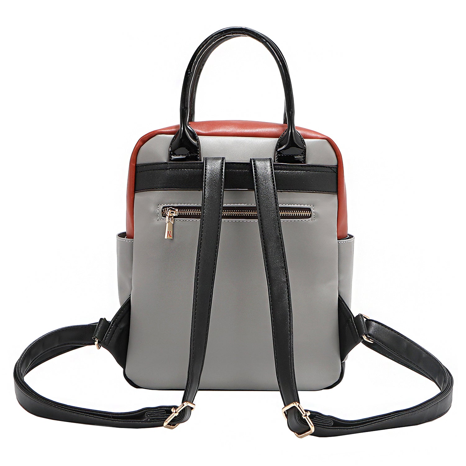 - Vegan leather exterior with glossy patent leather accents
