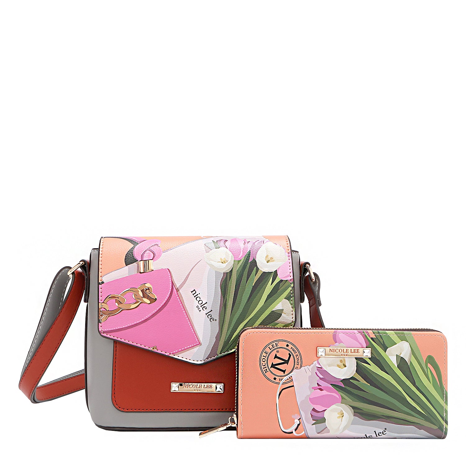 - Structured, dual top handles (5" drop) with Nicole Lee authentic