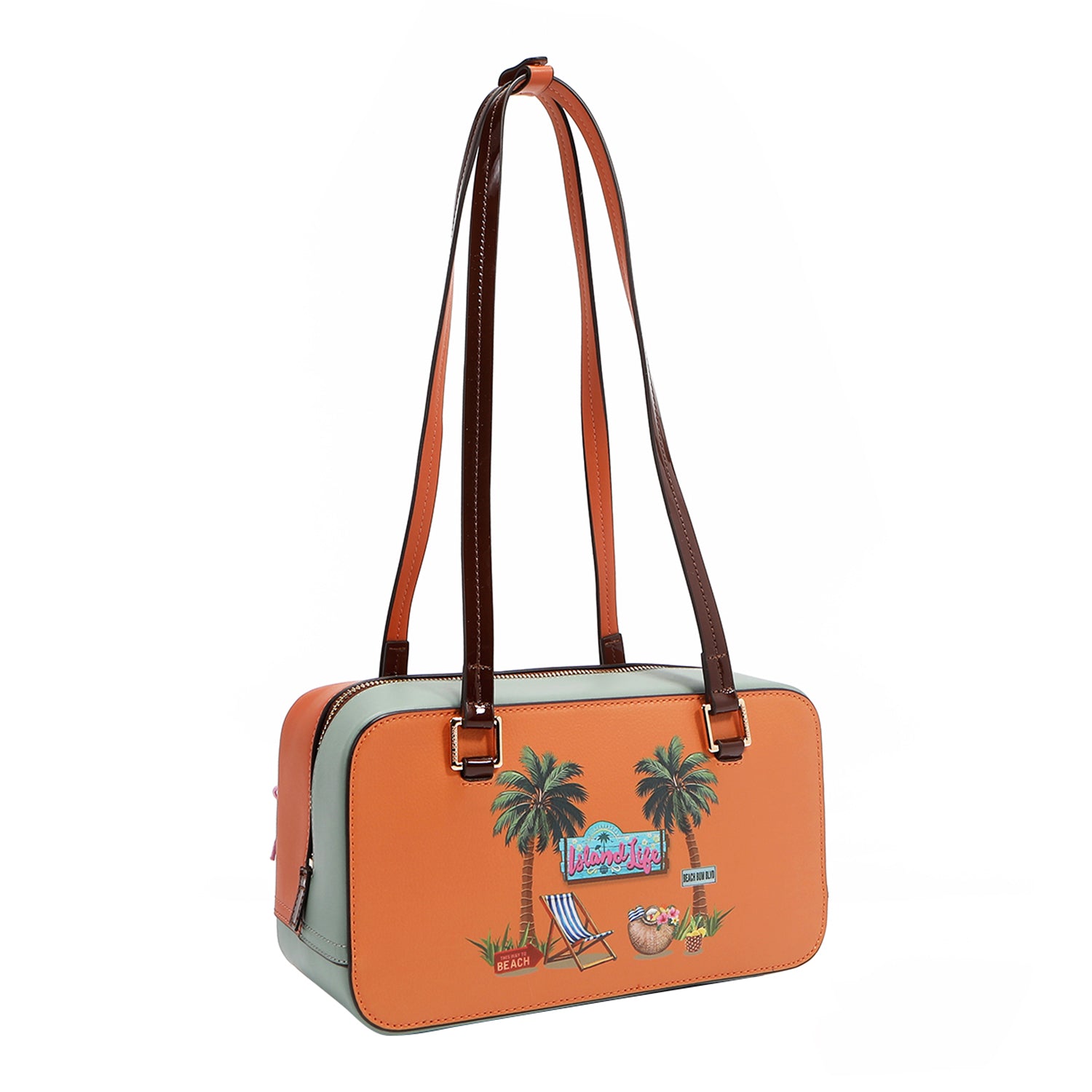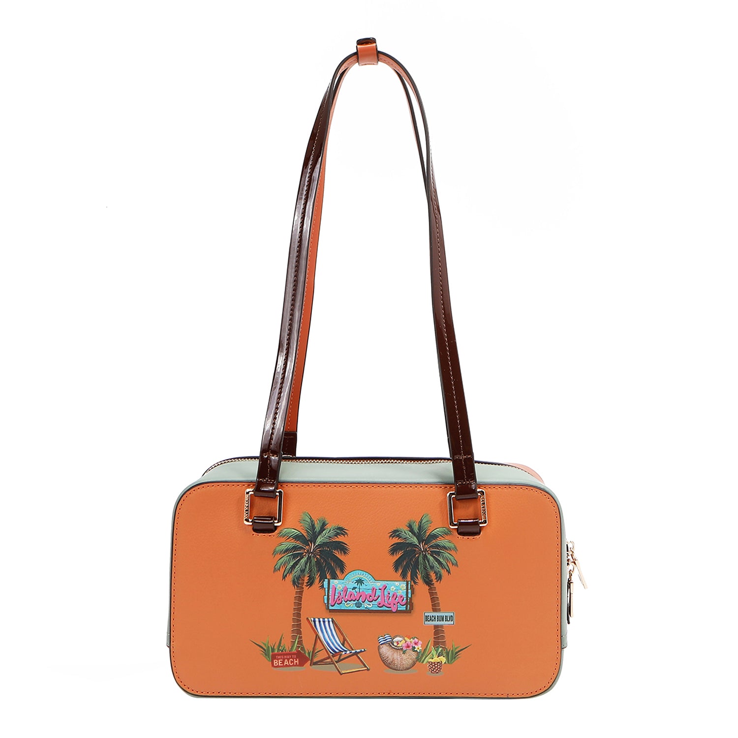 Sail through sunny days with our Sun & Sand Shoulder Bag, your go-to tropical treasure, splashed with breezy palms, dreamy hammocks, and all the ocean-kissed magic to make every outing feel like a beachside escape!