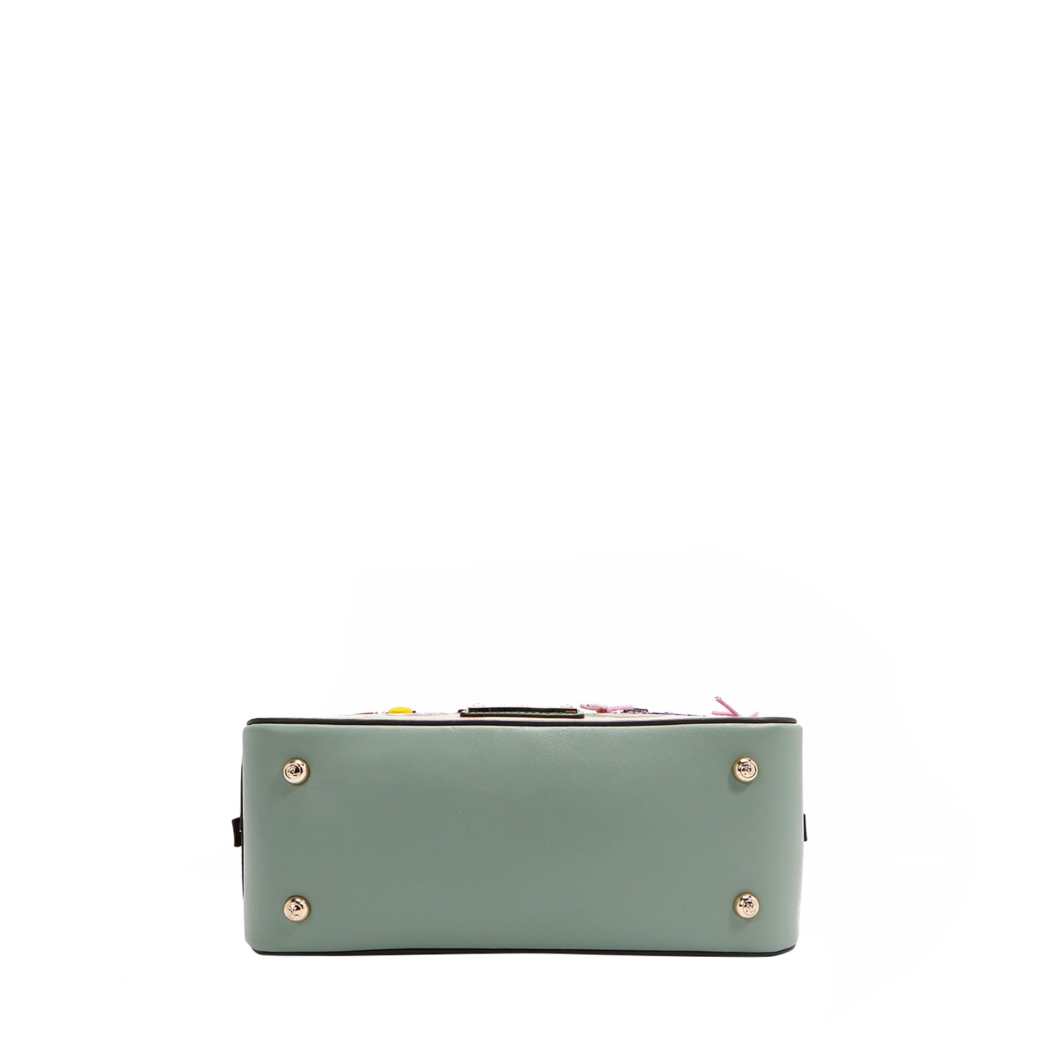 • Front is embellished with resin fruits, beaded embellishments and trims