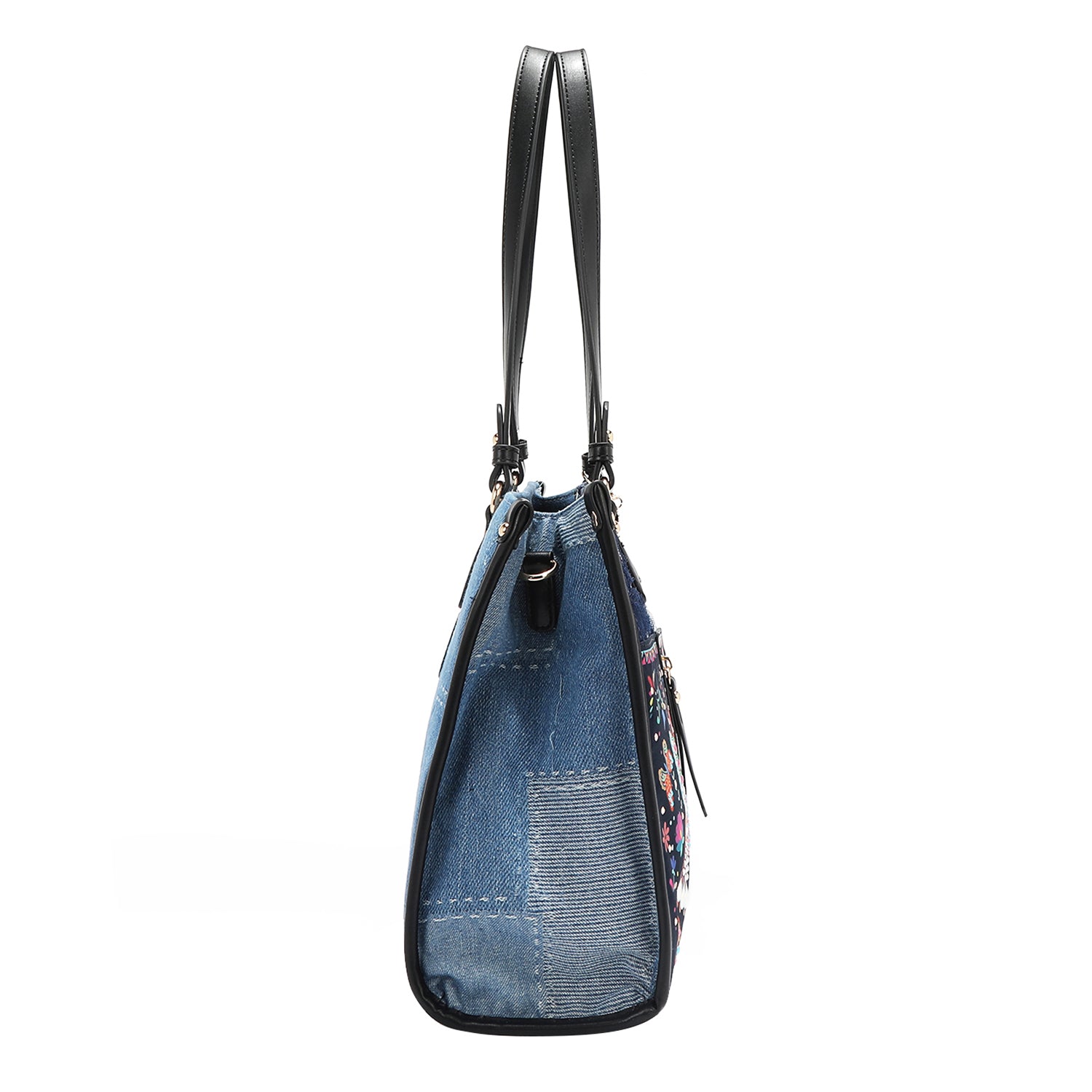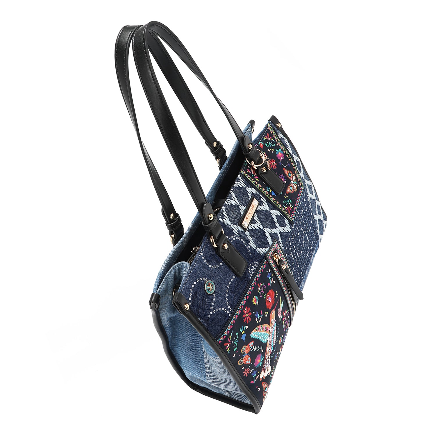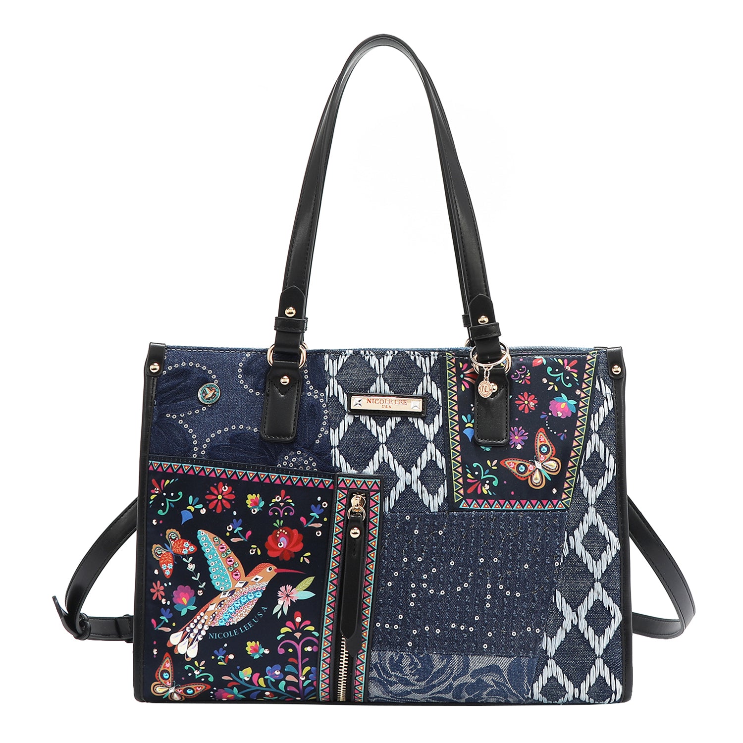 Carry the magic the "Bosque de Amor" Denim Tote holds your essentials in style while echoing the beauty of the hummingbird.