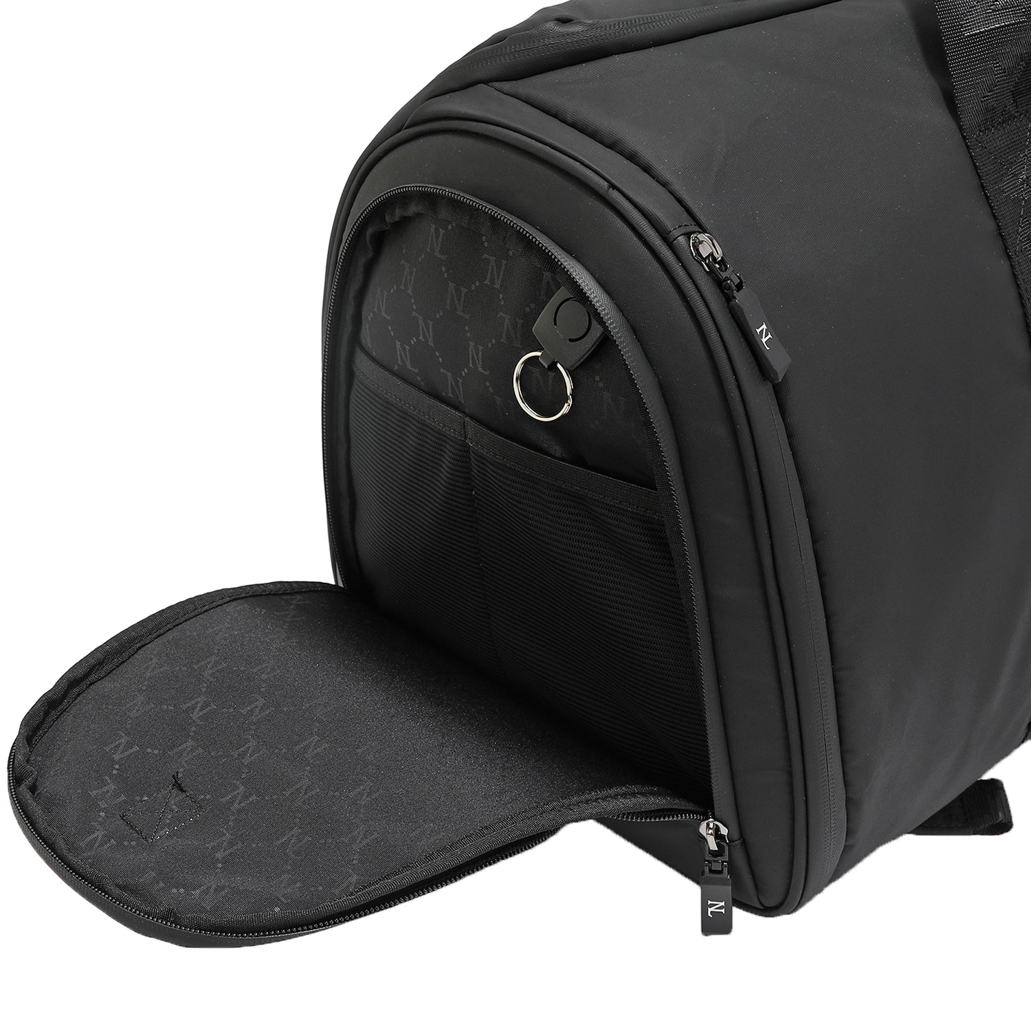 - Interior shoe zip compartment on side with exterior ventilation and velcro closure for optimal storage space