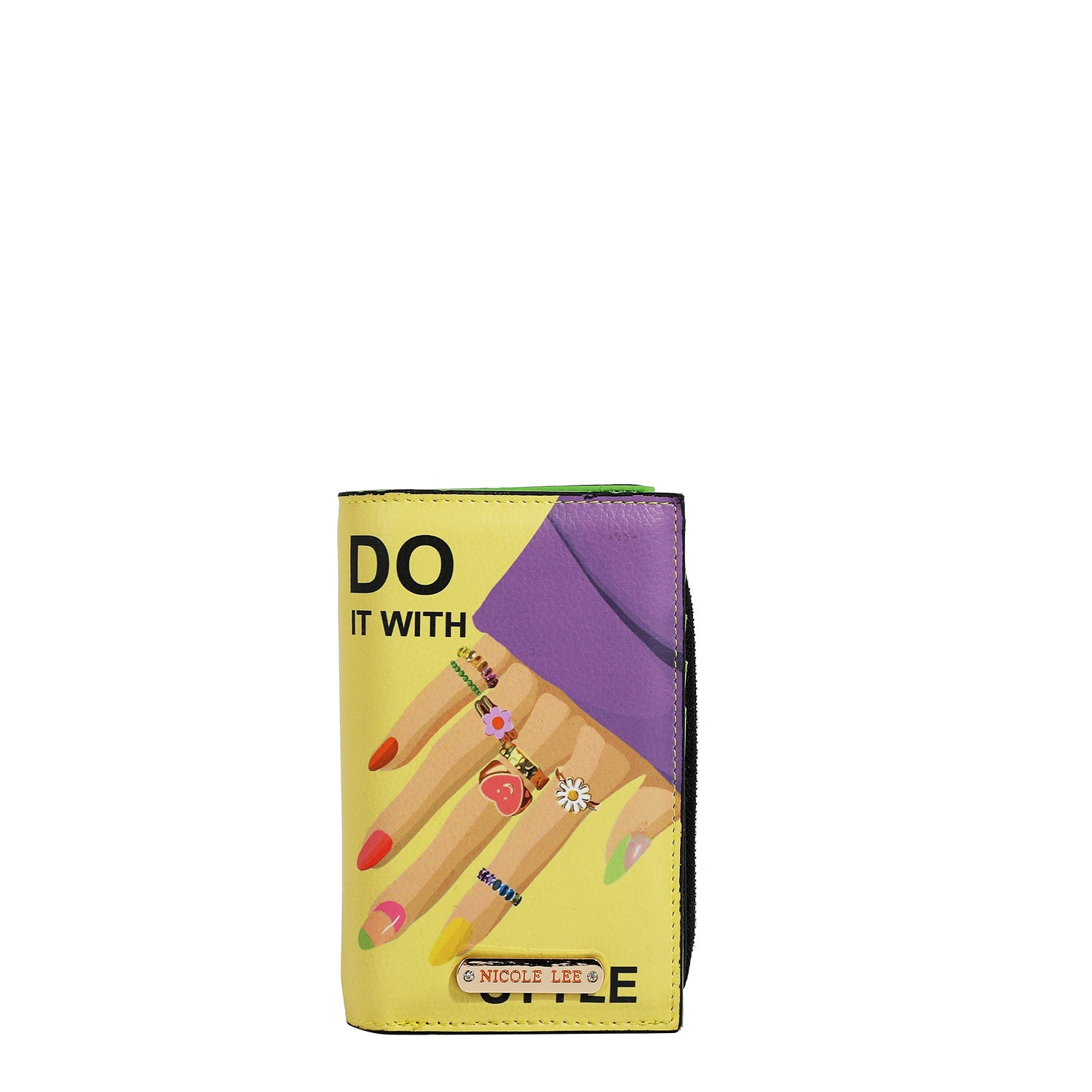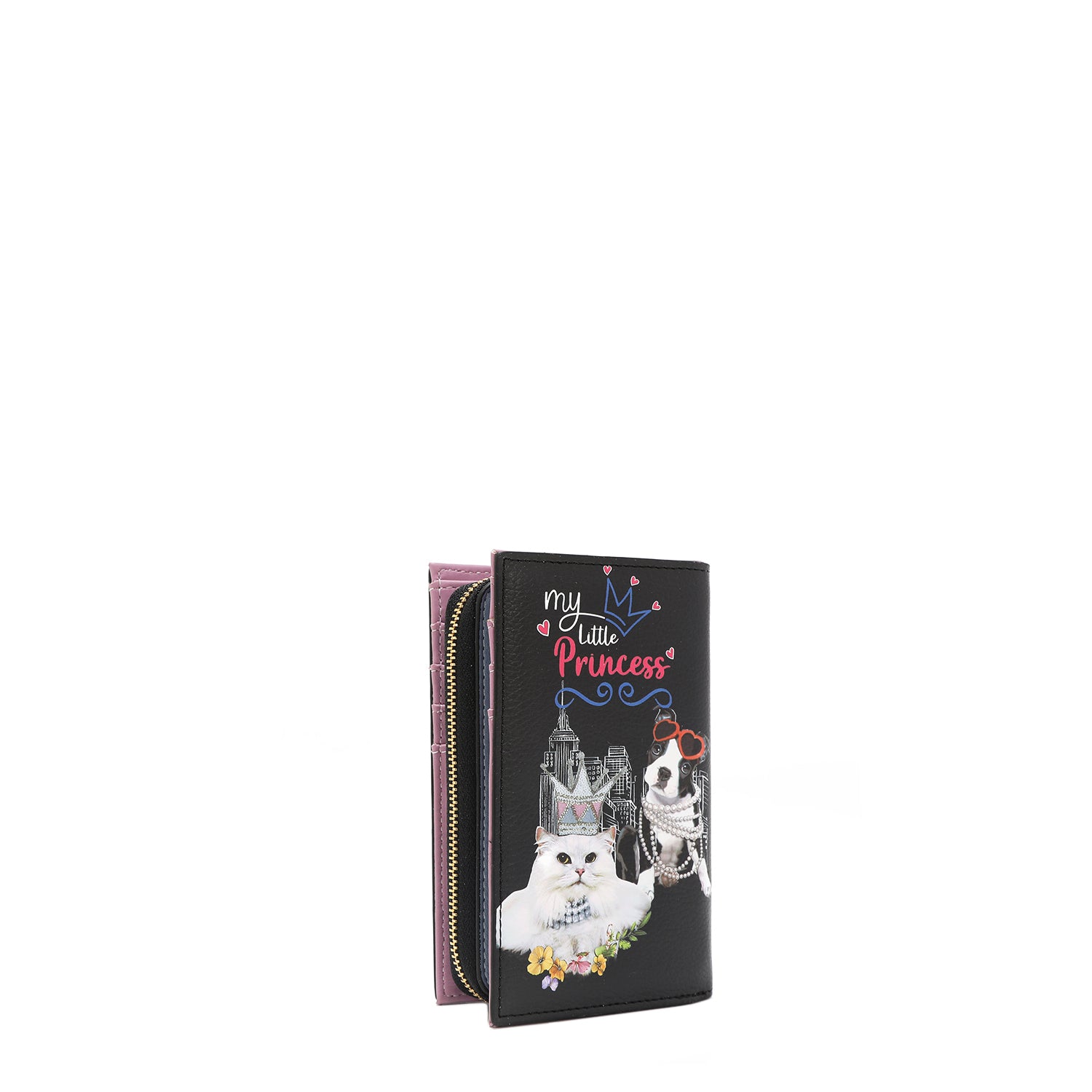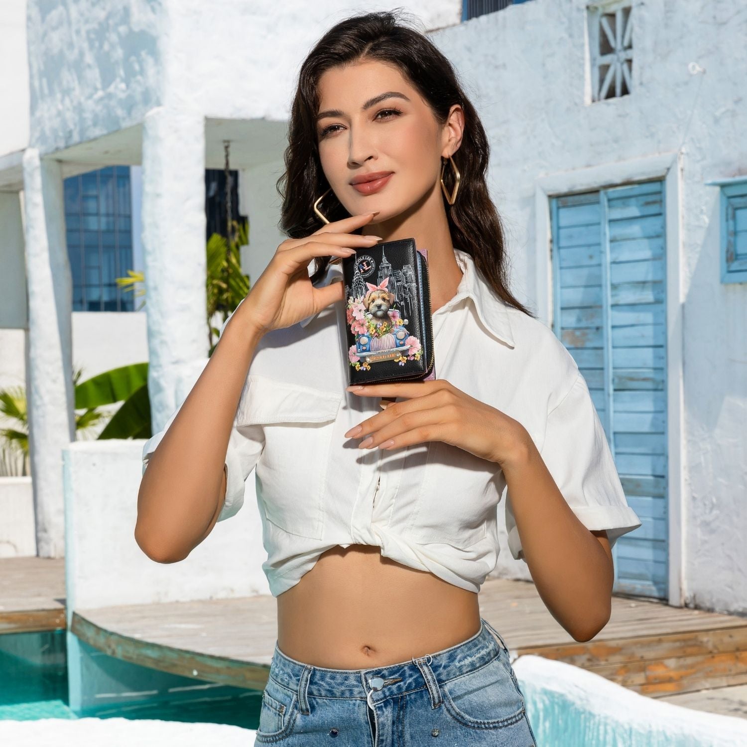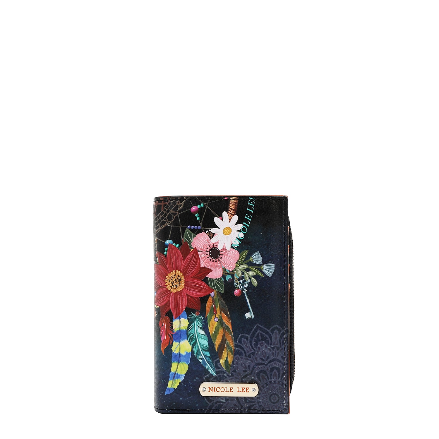 Stay organized and stylish with our sleek bifold wallet, featuring a center zip compartment, multiple card holders, and cash pockets in a structured silhouette.