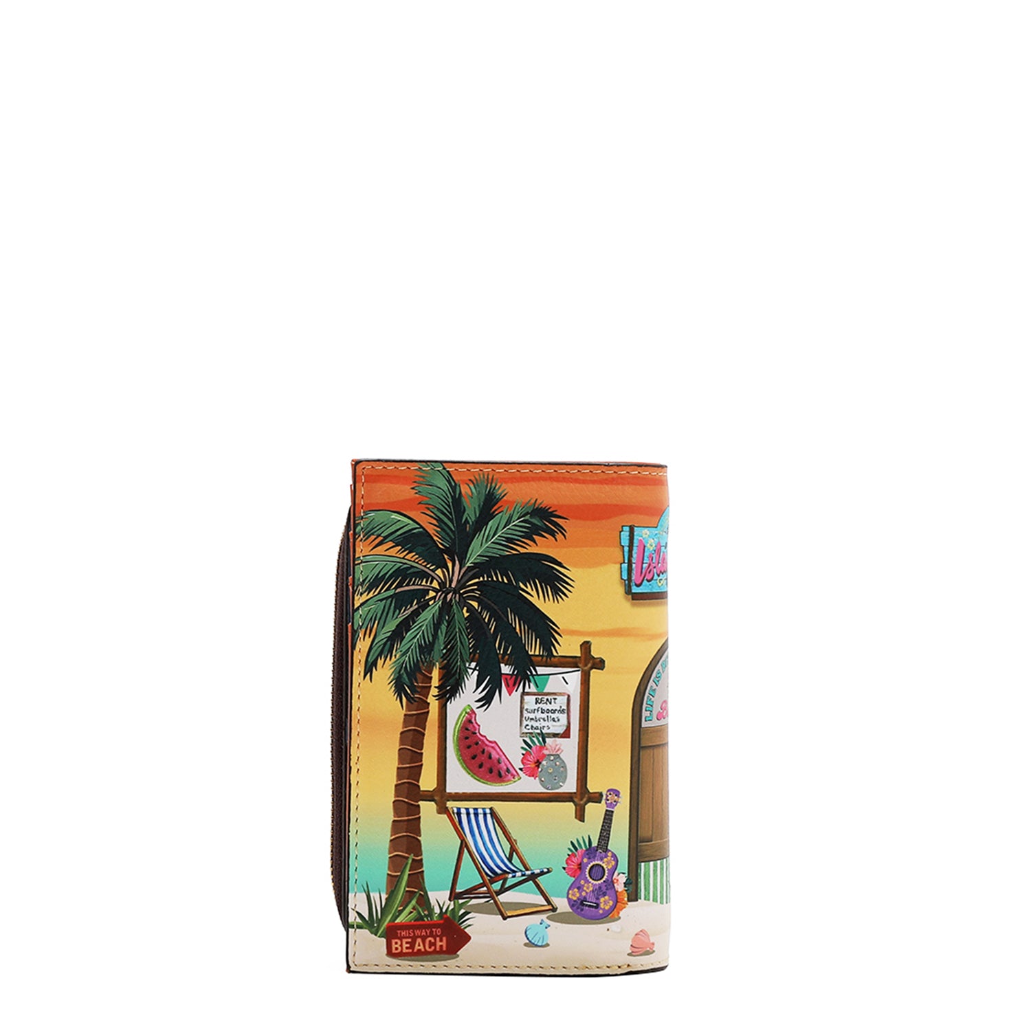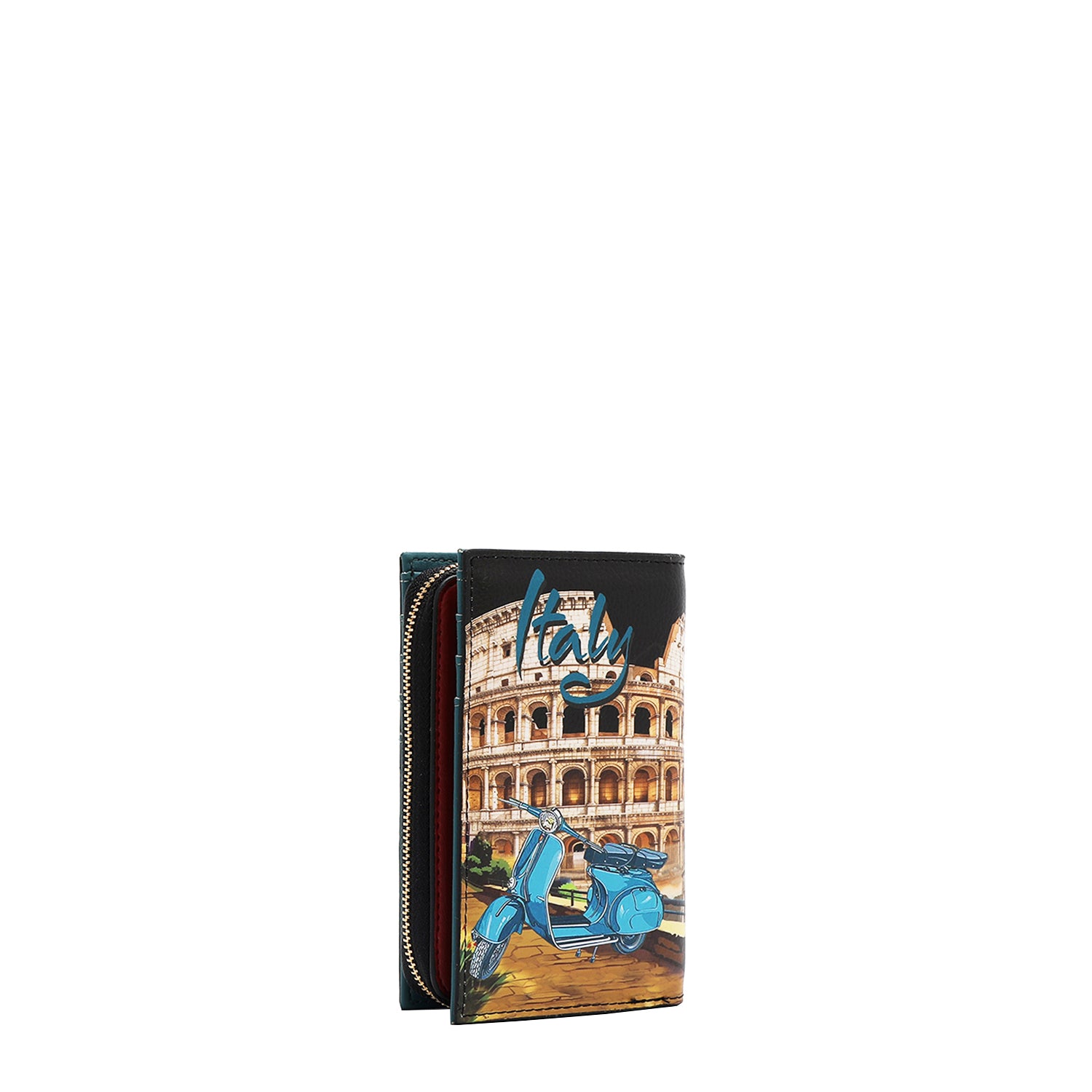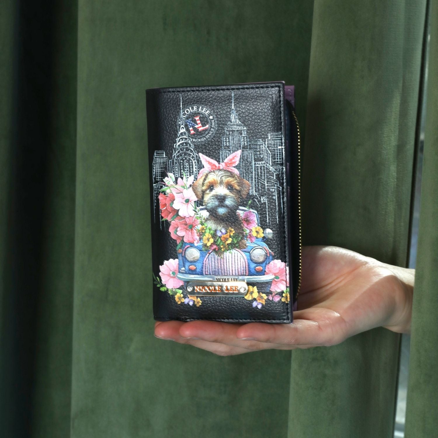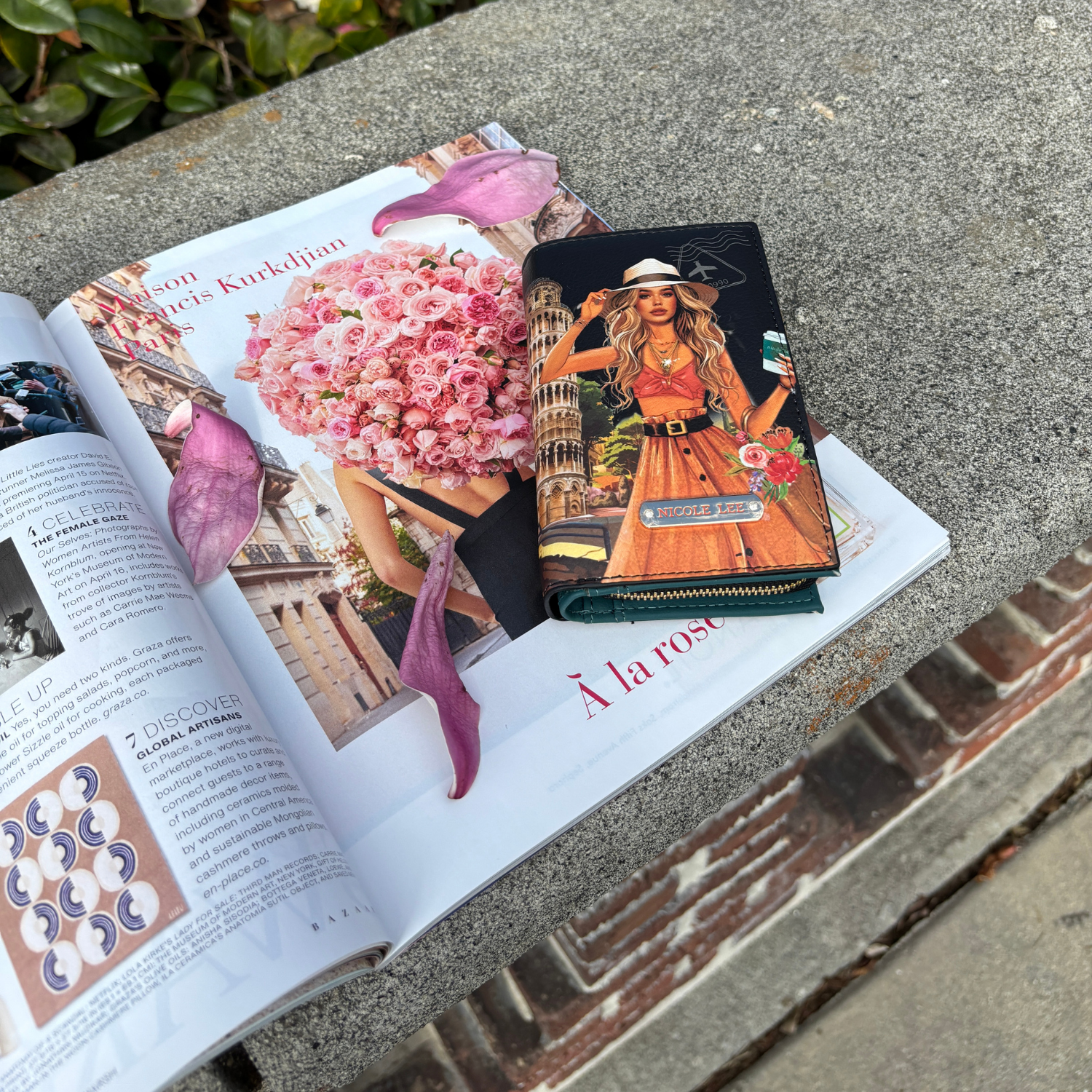 Stay organized and stylish with our sleek bifold wallet, featuring a center zip compartment, multiple card holders, and cash pockets in a structured silhouette.