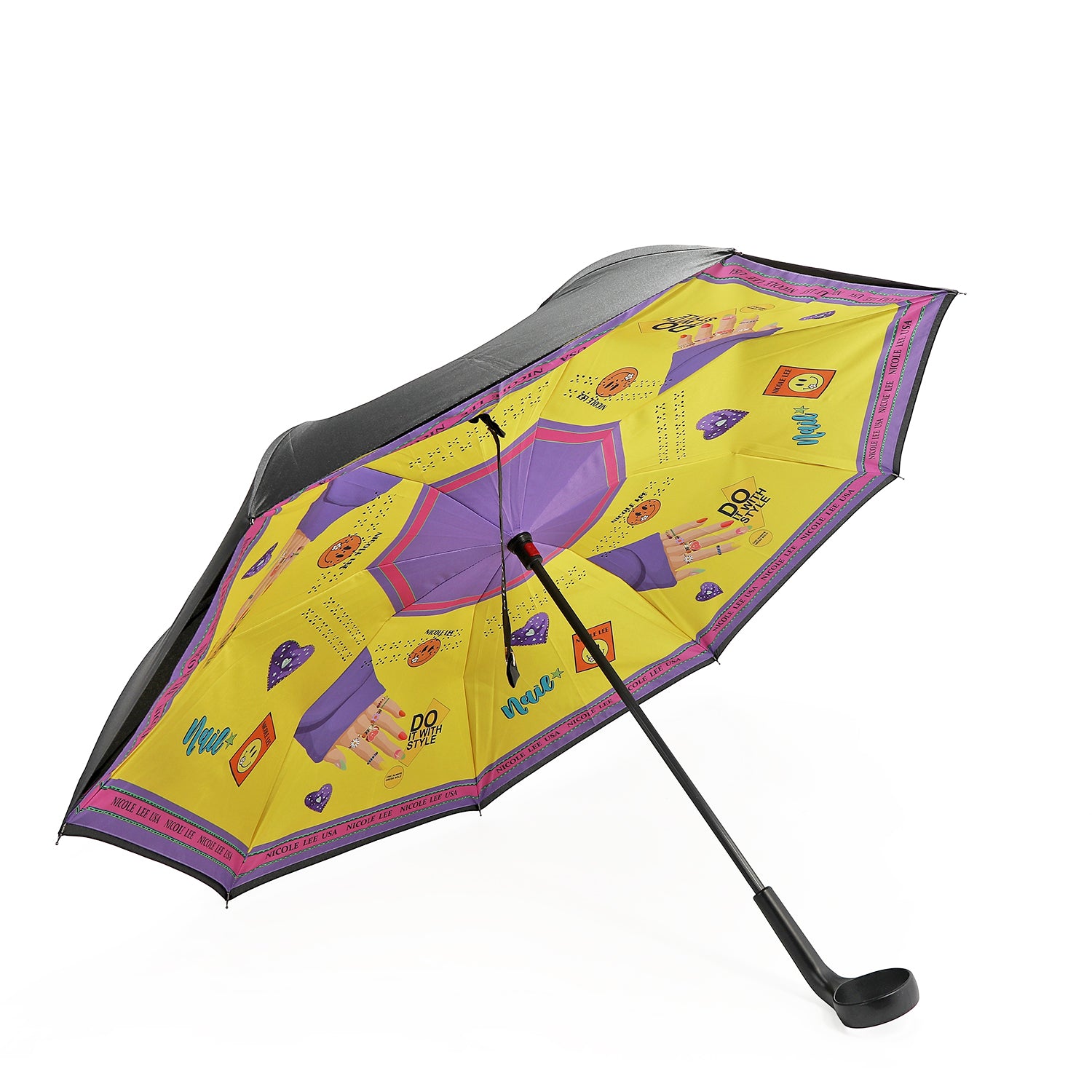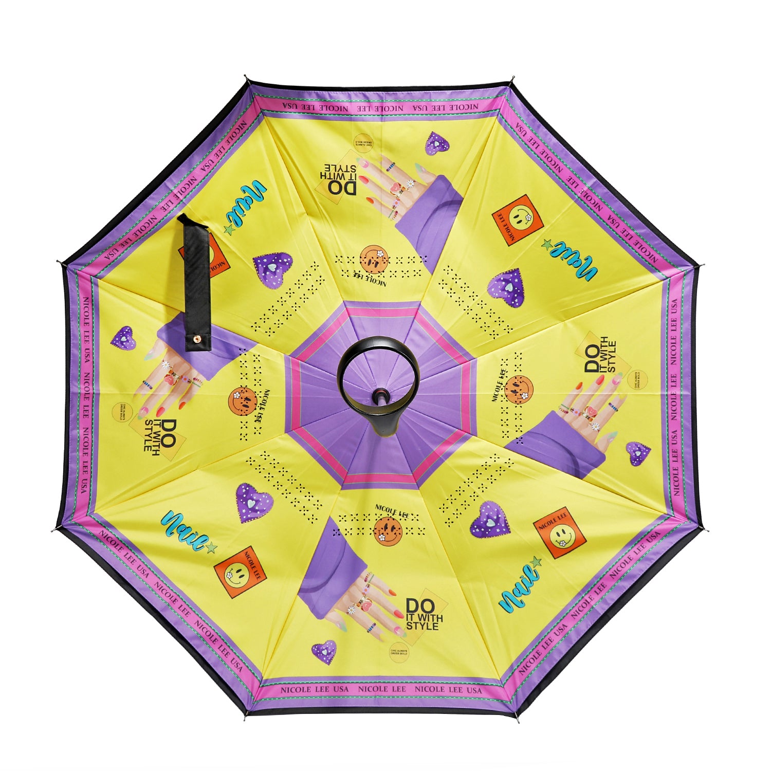Don't let those rainy days ruin your outfit or floors with our Blakely umbrella. The inverted design closes from the inside-out so you can carry it around without dripping. You can also take your coffee with you thanks to the built-in cup holder handle. (Does not fit tumblers)