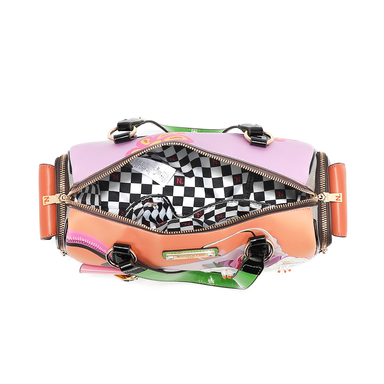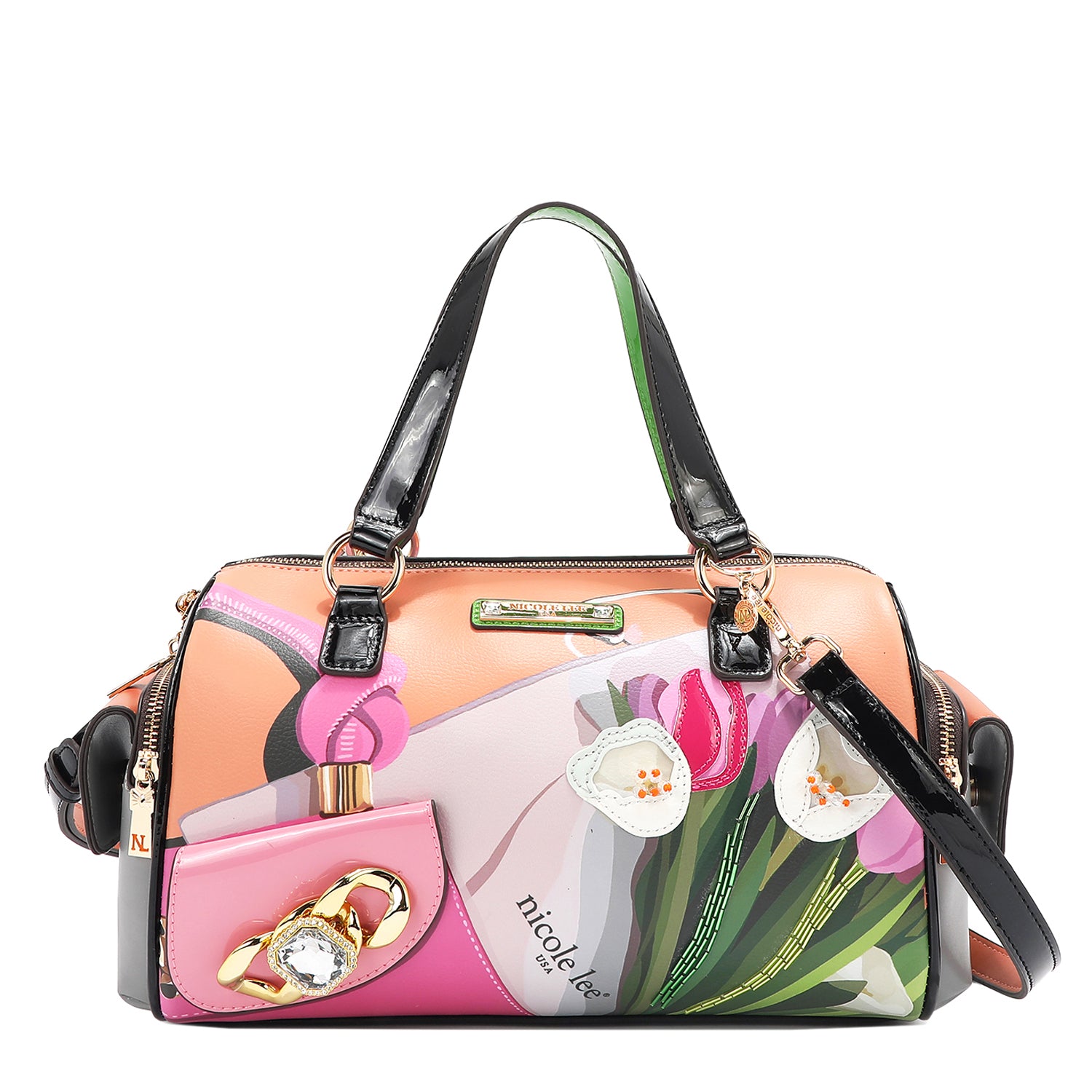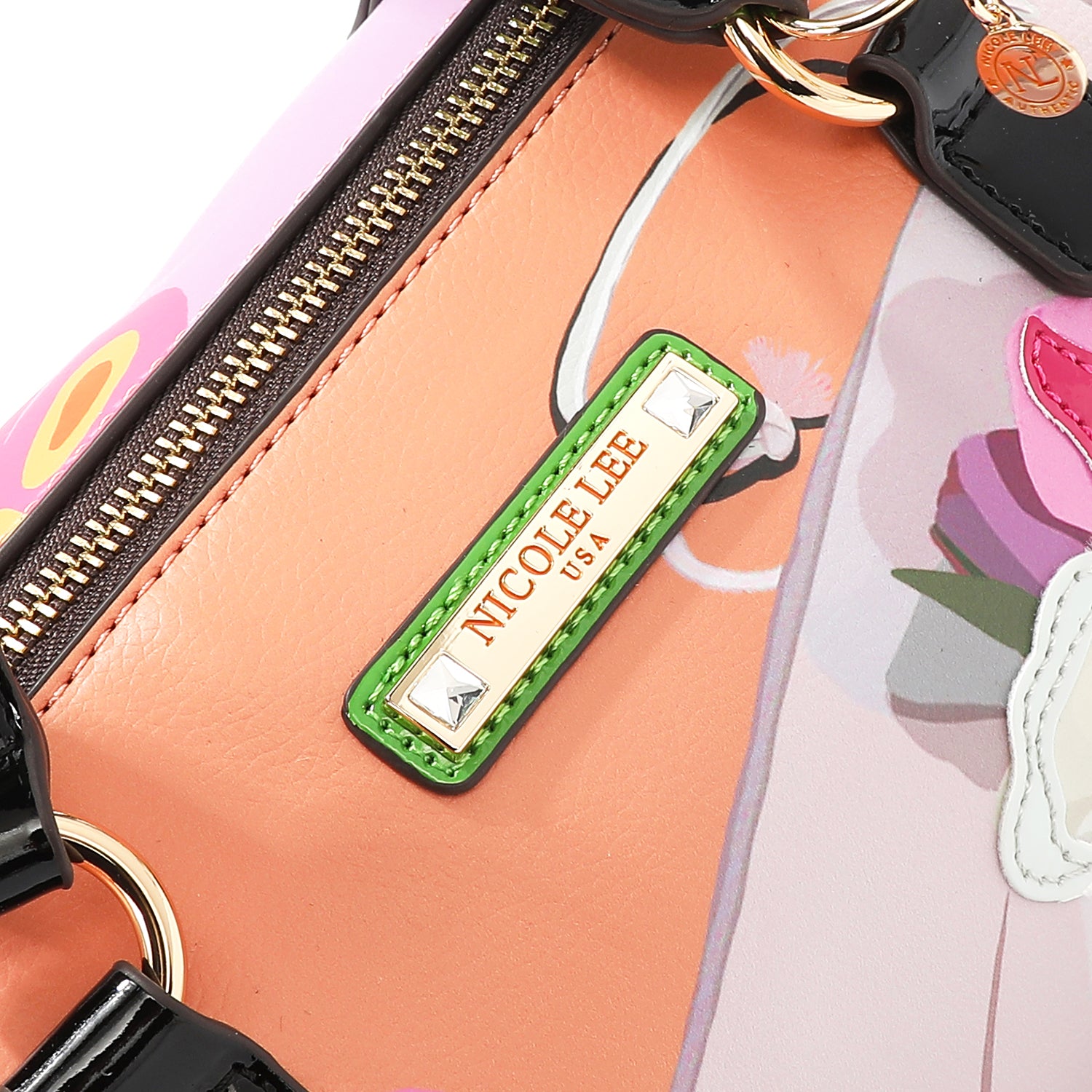 - Relaxed, dual top handles (6" drop) with Nicole Lee authentic circle charm