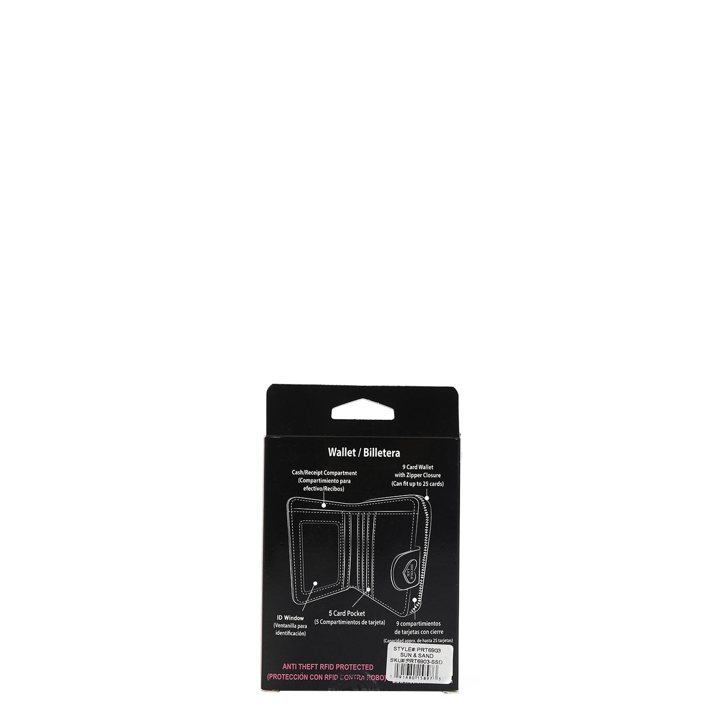 - Zip compartment with 2 interior note slots and 9 interior accordion-style card slots (Can fit up to 25 cards)