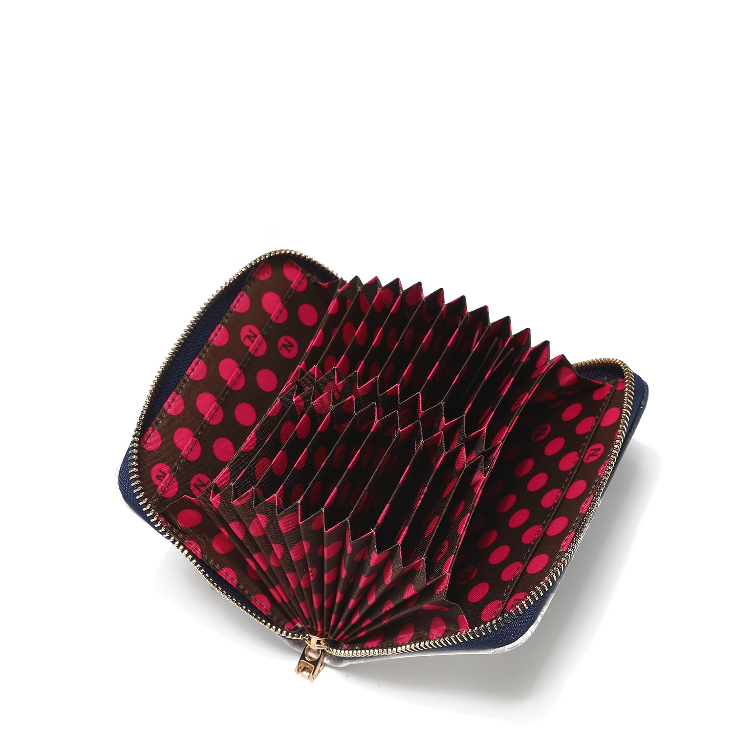 Discover the perfect balance of compact design and ample space with our Isabel wallet. Unveil its accordion-style organizer that accommodates up to 40 cards, all secured with a wrap-around zip closure for effortless on-the-go style.