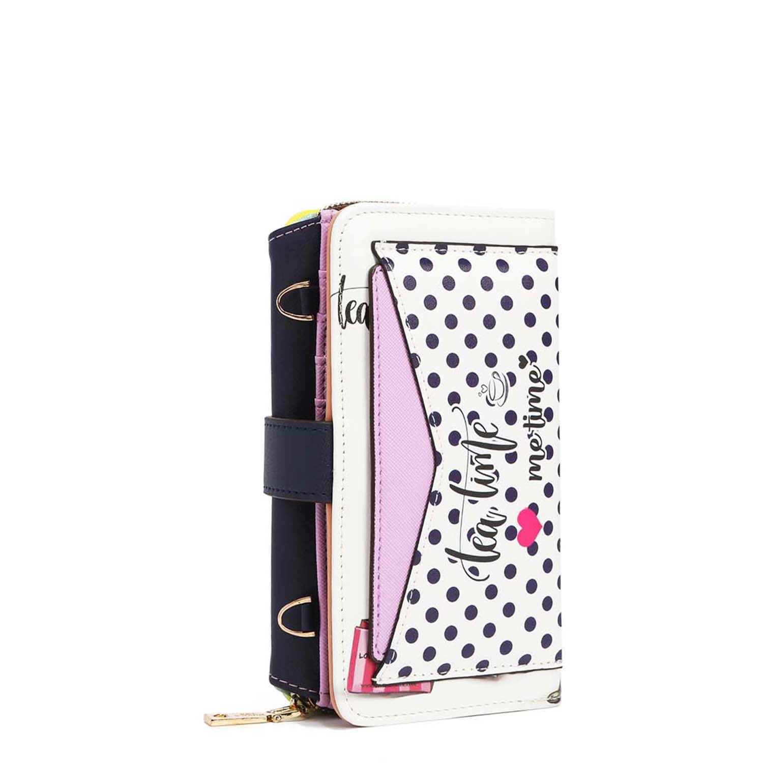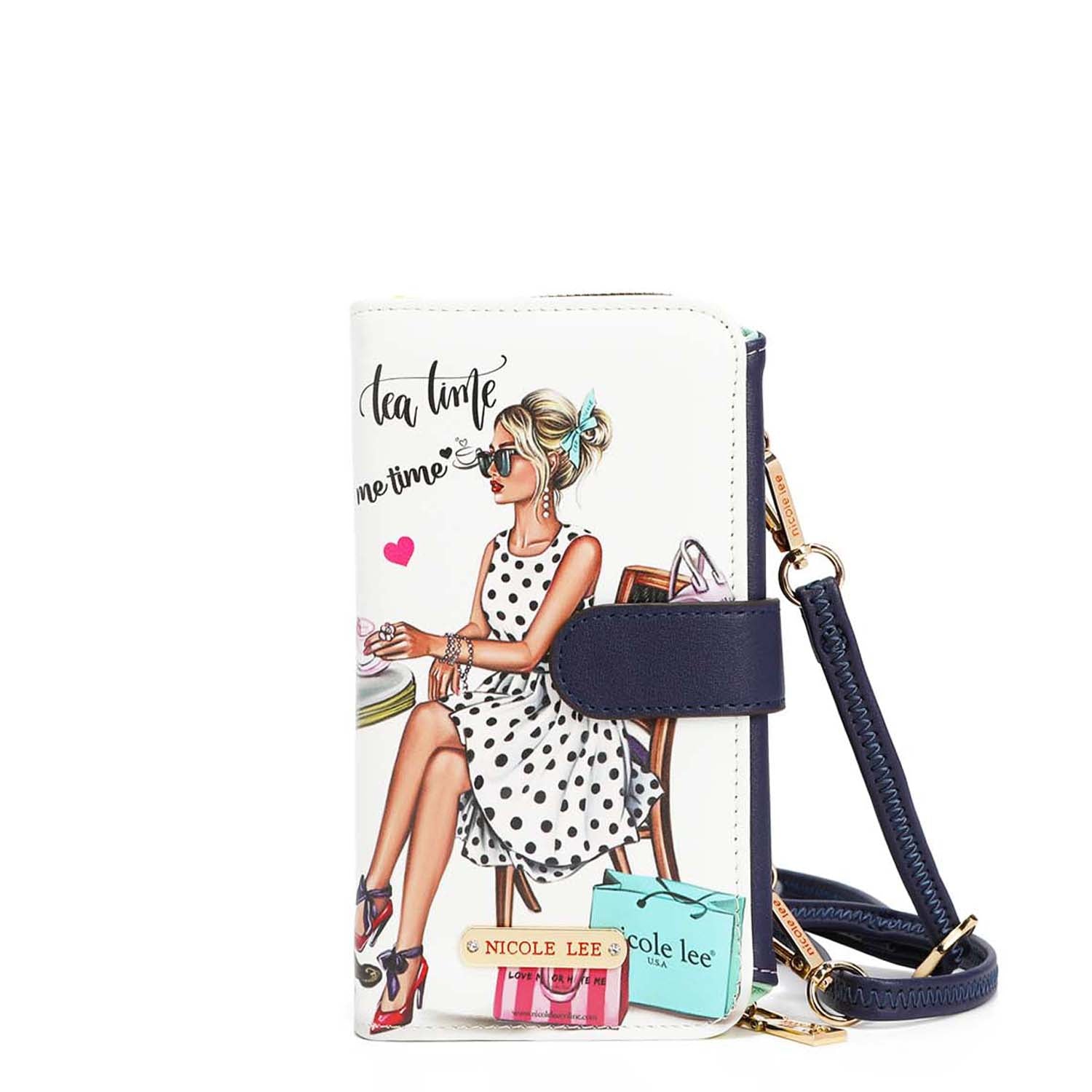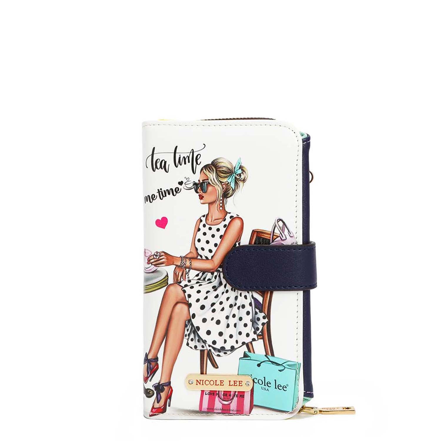 Our trifold phone case and wallet can convert to a crossbody with the optional and adjustable crossbody strap. A zip compartment, multiple card slots and a heart-shaped mirror make this an ultra-functional staple for everyday use.