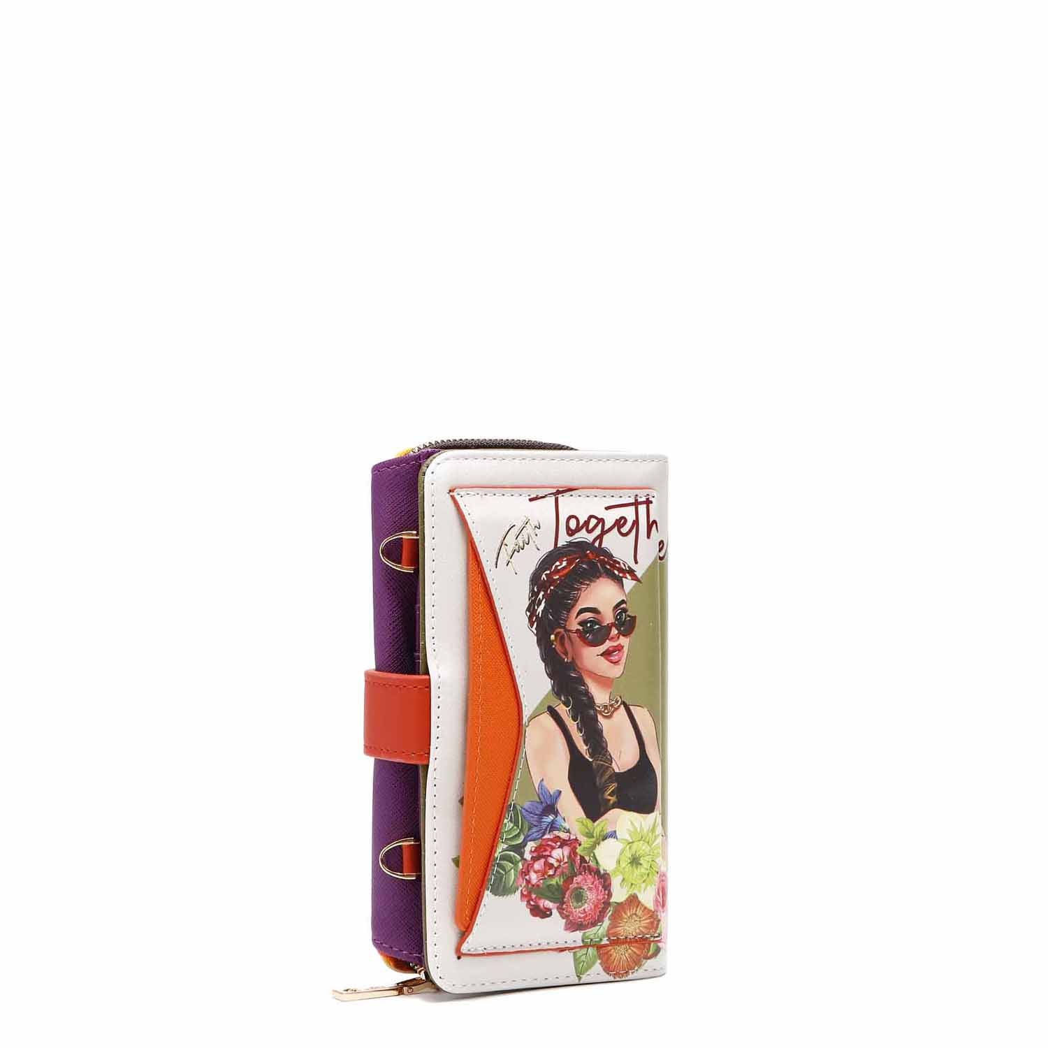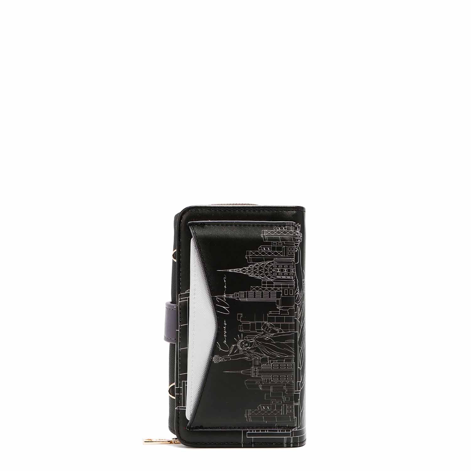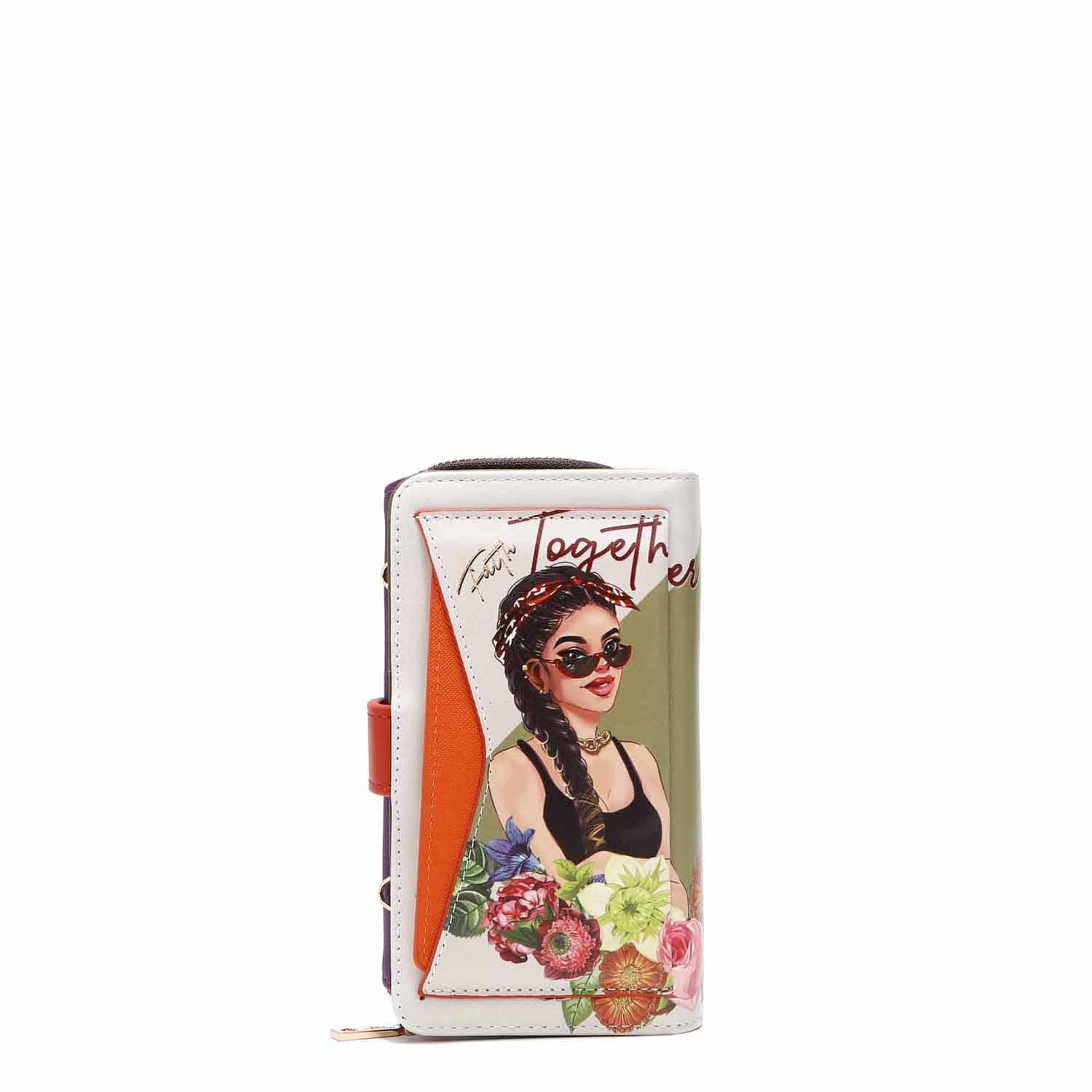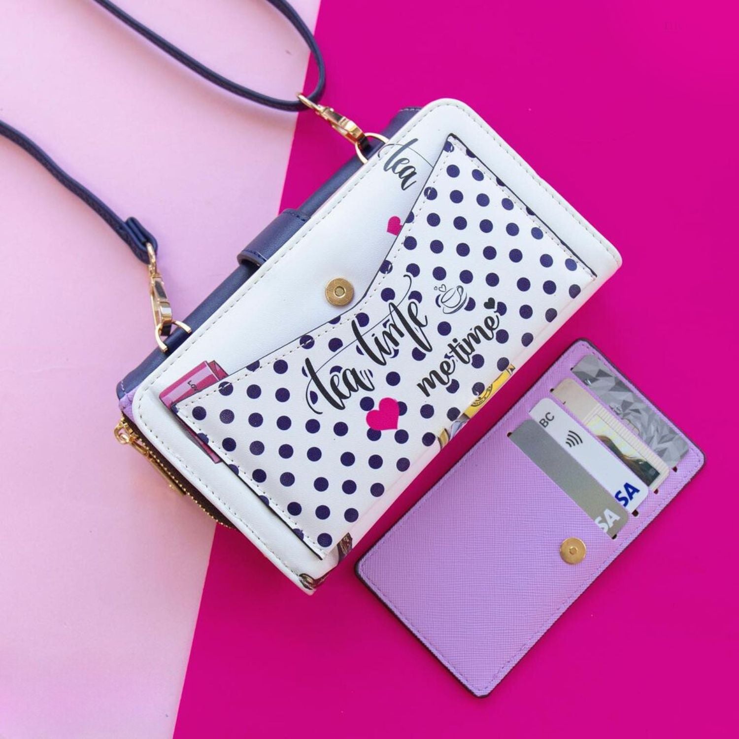 Our trifold phone case and wallet can convert to a crossbody with the optional and adjustable crossbody strap. A zip compartment, multiple card slots and a heart-shaped mirror make this an ultra-functional staple for everyday use.
