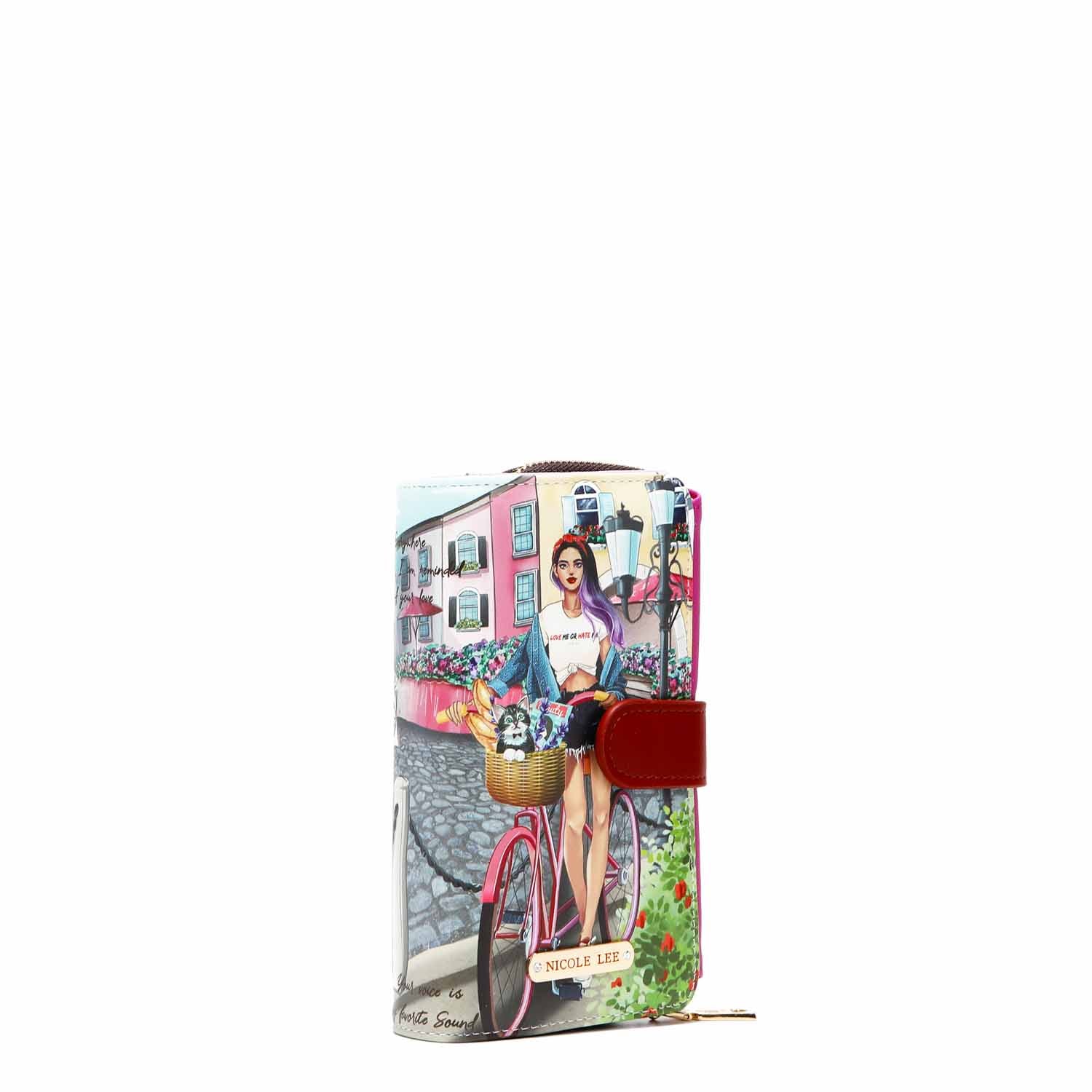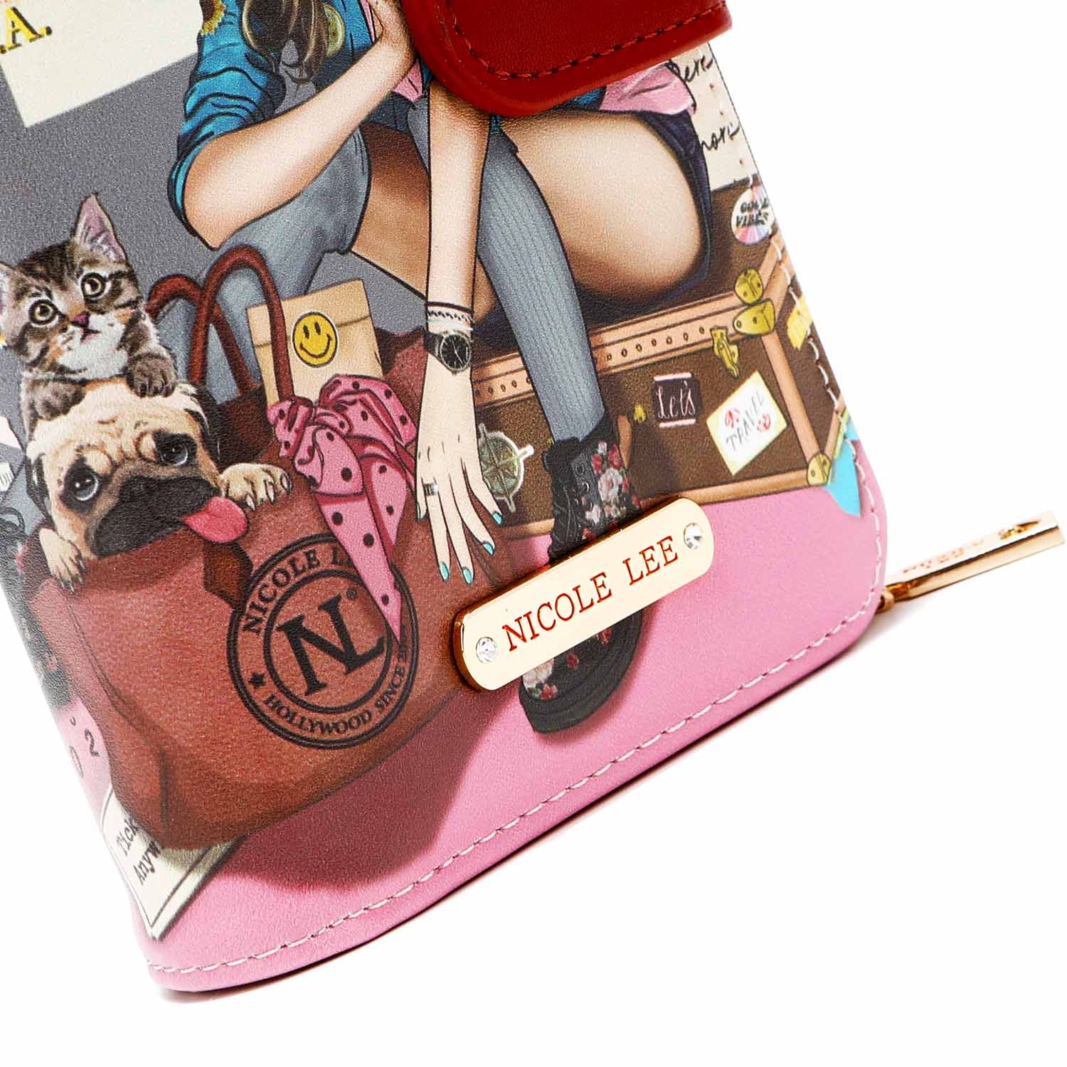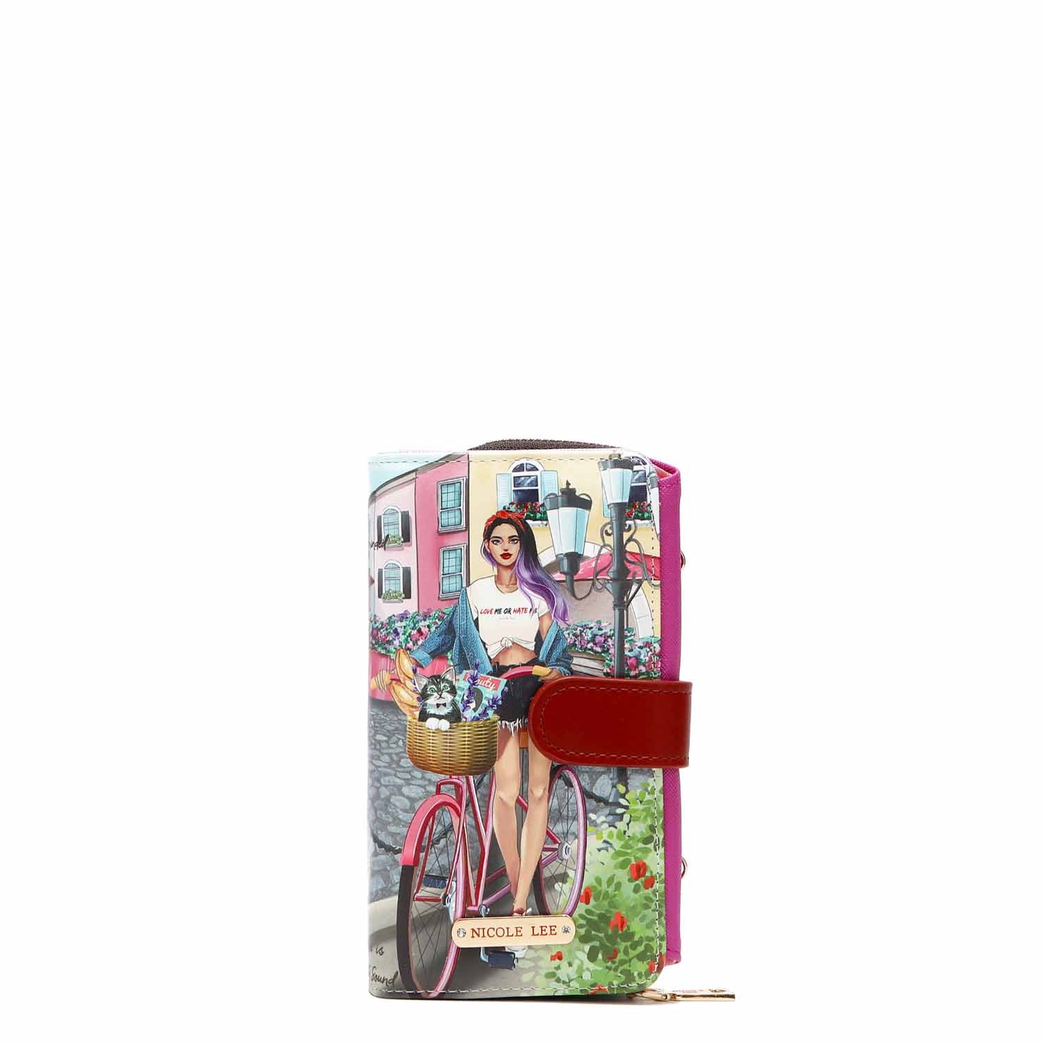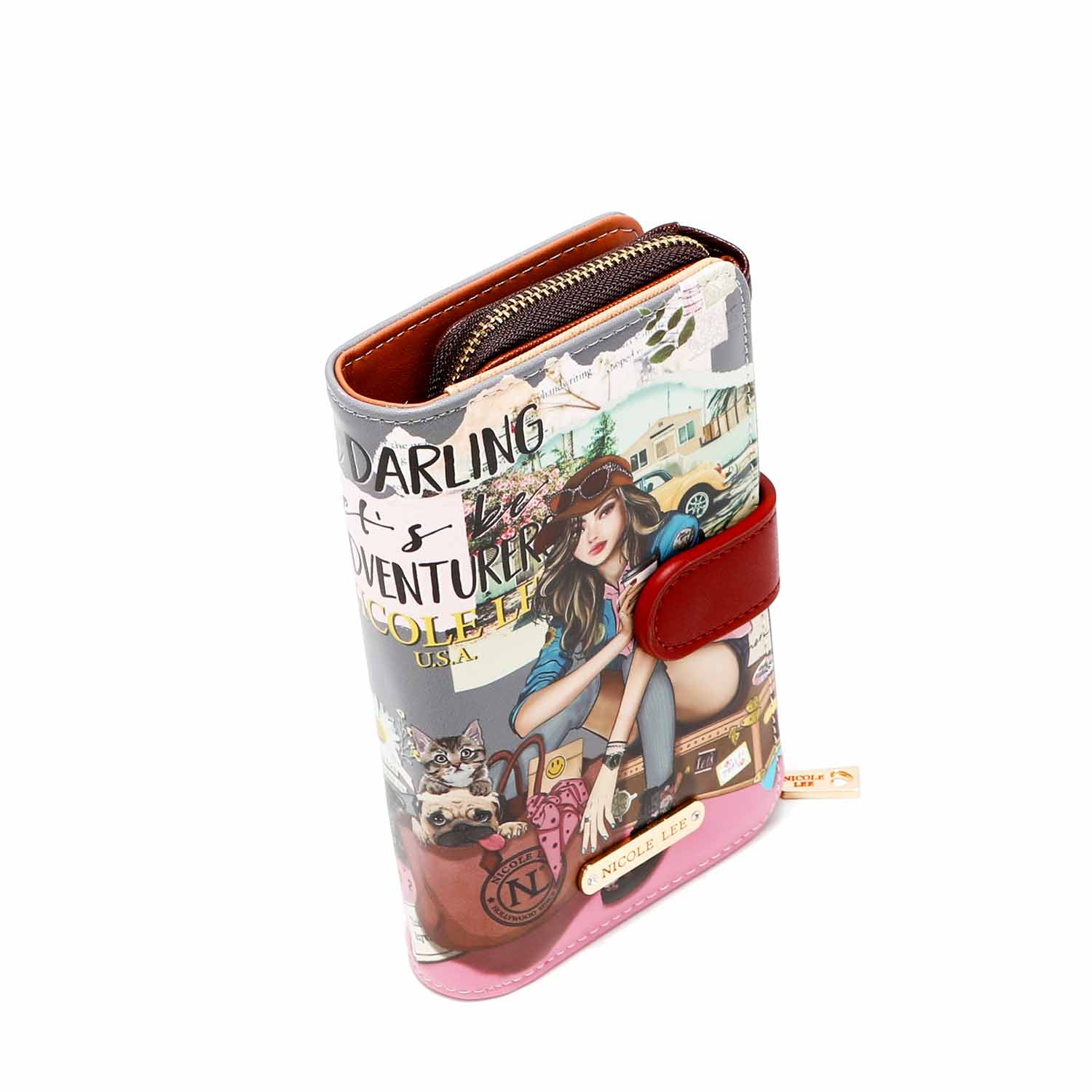 • Trifold interior with wrap-around zip compartment and heart zipper pull