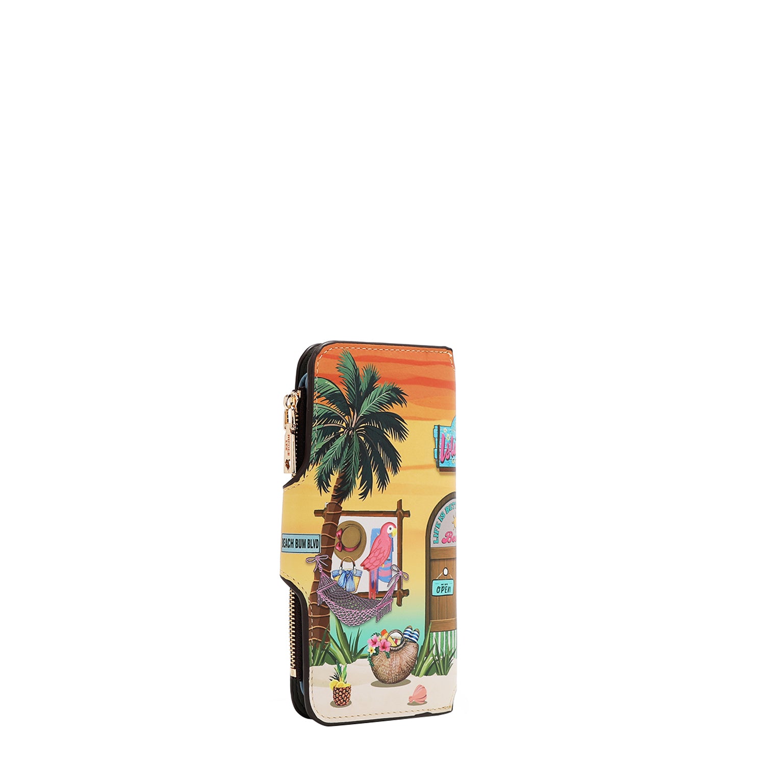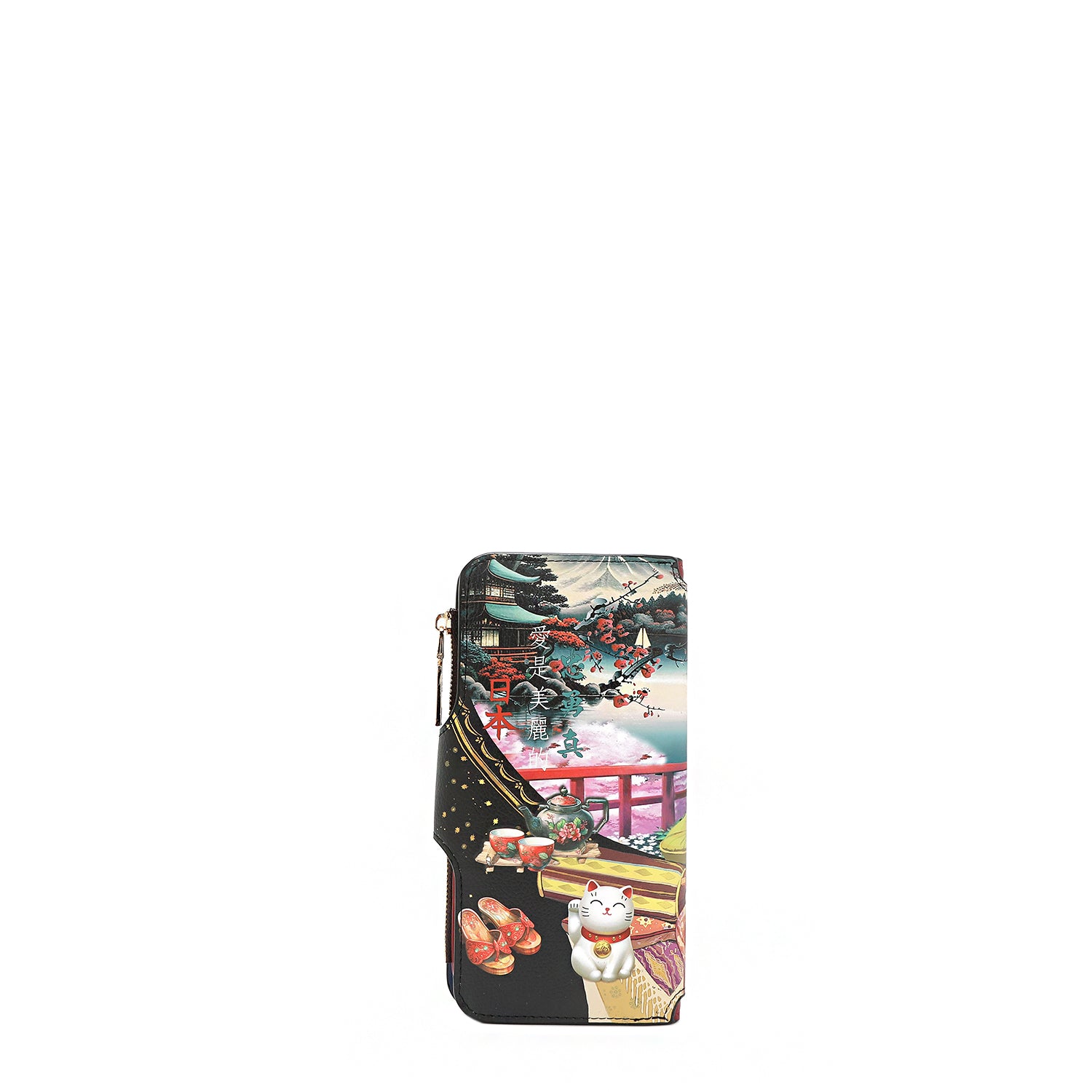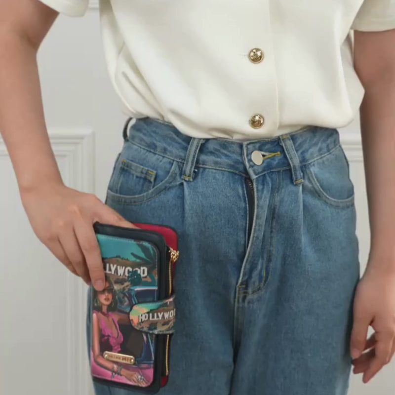 Experience ultimate organization with our layered wallet. Unfold it to reveal a bifold interior, complete with a center zip compartment that keeps your cash neatly organized and secure.